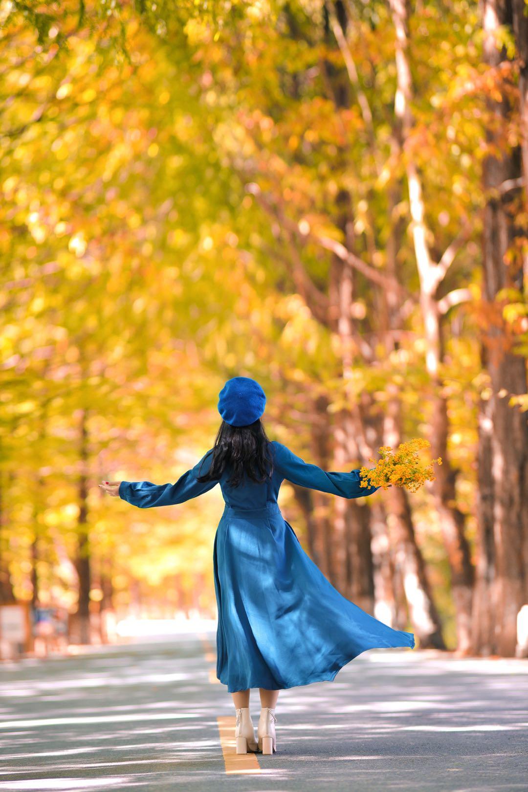 前面说到不建议姐姐们拍近景照,在景别的选择上,远景的方式更推荐,它可以很好地帮你规避身材、颜值等问题,借助美美的环境渲染画面的整体氛围,这样拍出的照片很有意境。
