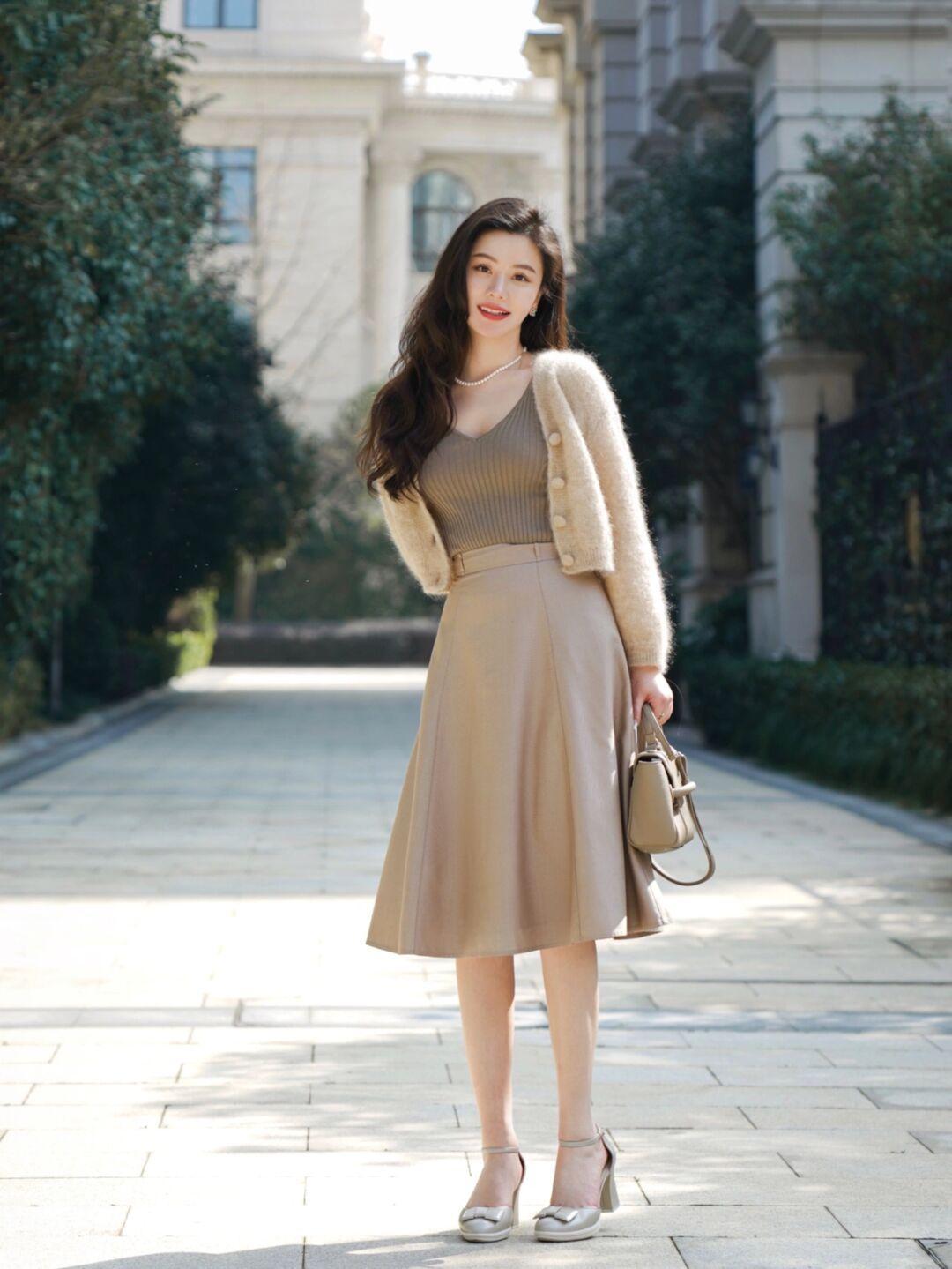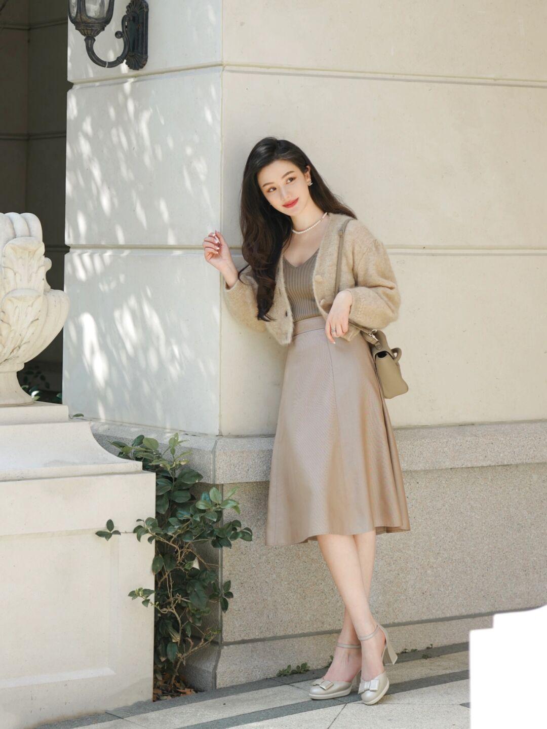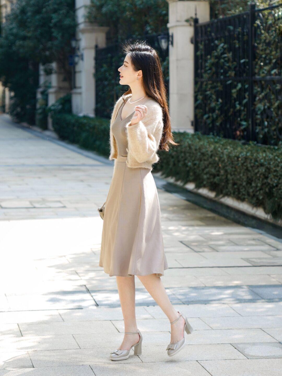 拍坐姿全身照,尤其是穿着裙装拍的时候,翘起二郎腿是很有必要的,既能避免走光,又能拍出高级、气质的既视感。