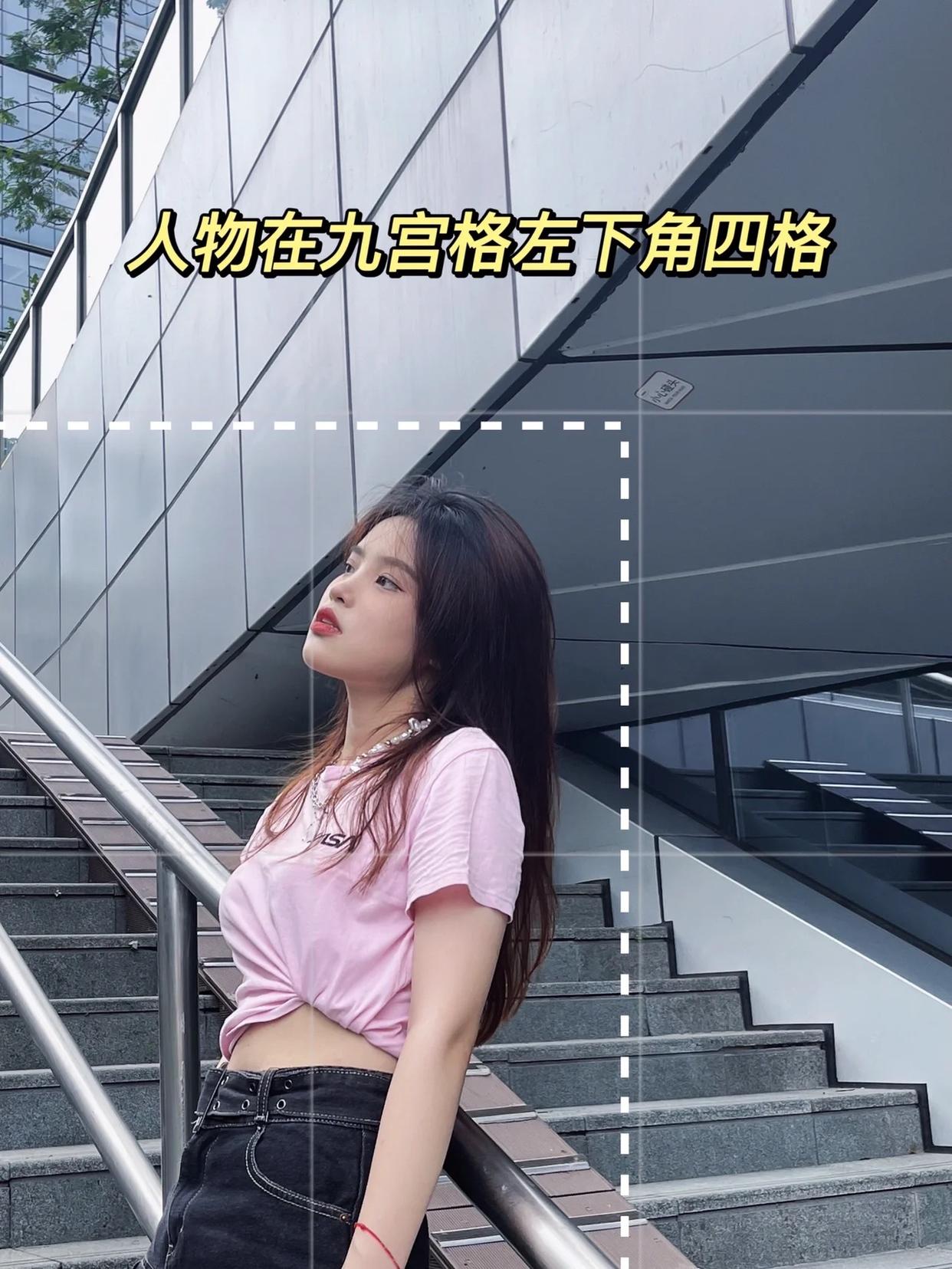 如果是只拍半身照,除了将人物安排在画面的中间位置这种常规拍法,也可以参考下图,人物放置于九宫格的左下角或右下角位置,记得人物视线前方适当留白,可以为观众留下想象的空间。