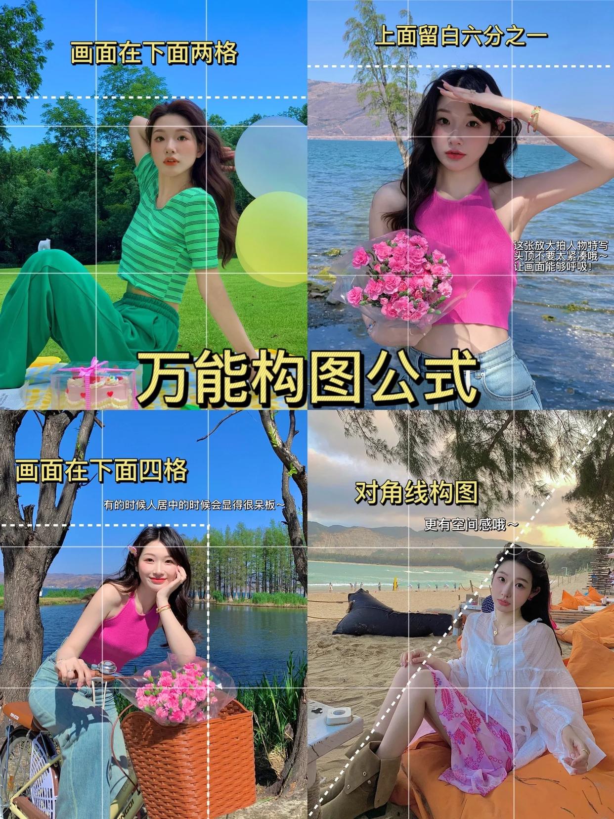 五一出游拍美照,除了穿搭、妆容、姿势外,构图方式也是很关键的,为了方便大家在拍旅行照更出片,小编便为大家整理出以下万能构图方式,记住五一出门游玩拍美照,这些万能的构图公式不要少,拍照出片率高人也美。