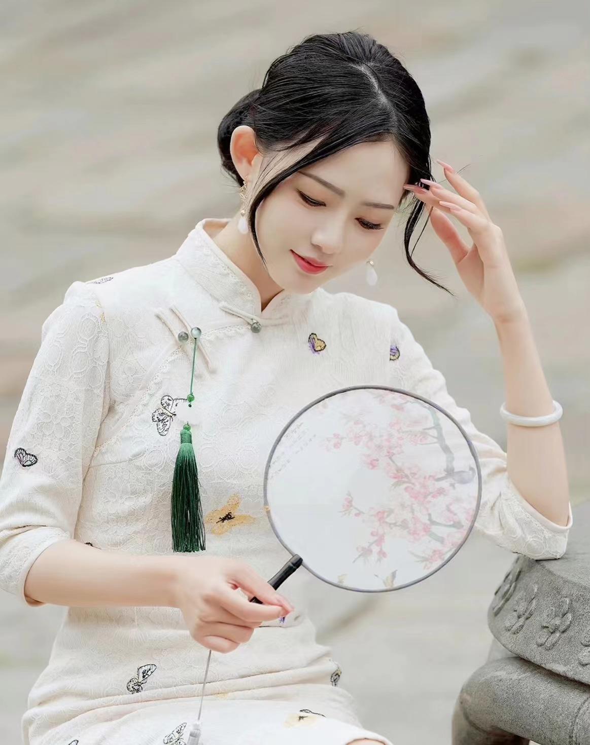初次拍旗袍人像,可能在对于眼神光和表情的管理没有很好地把握,这个时候就不要看镜头拍了,容易加剧拍摄当下的紧张心理。