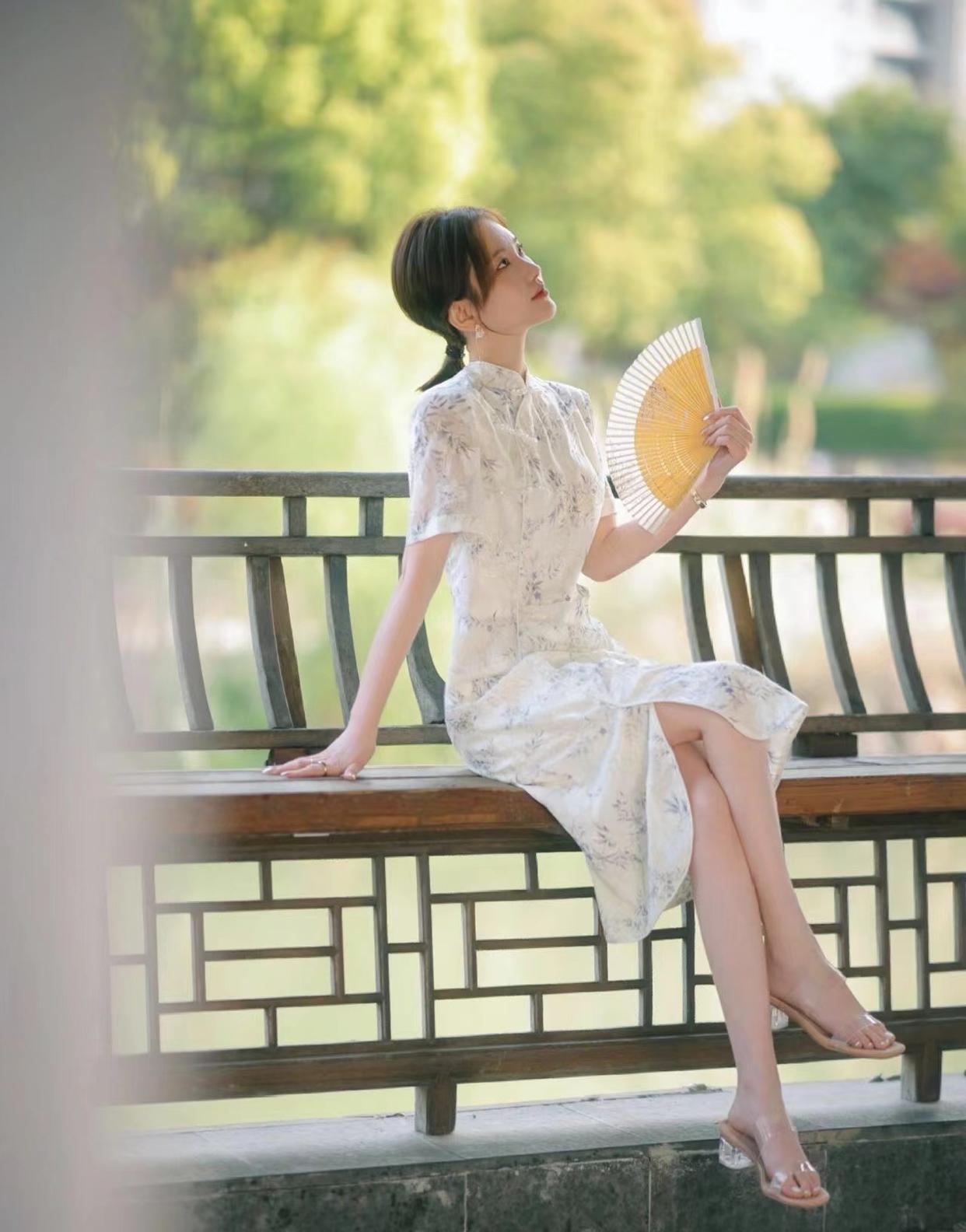 拍好旗袍人像,很大的要点在于突出模特本身身材的曲线,如果自身身材曲线不算突出的时候,可以借助为身体选择倚靠点的方式,让身体摆弄出自然的幅度。