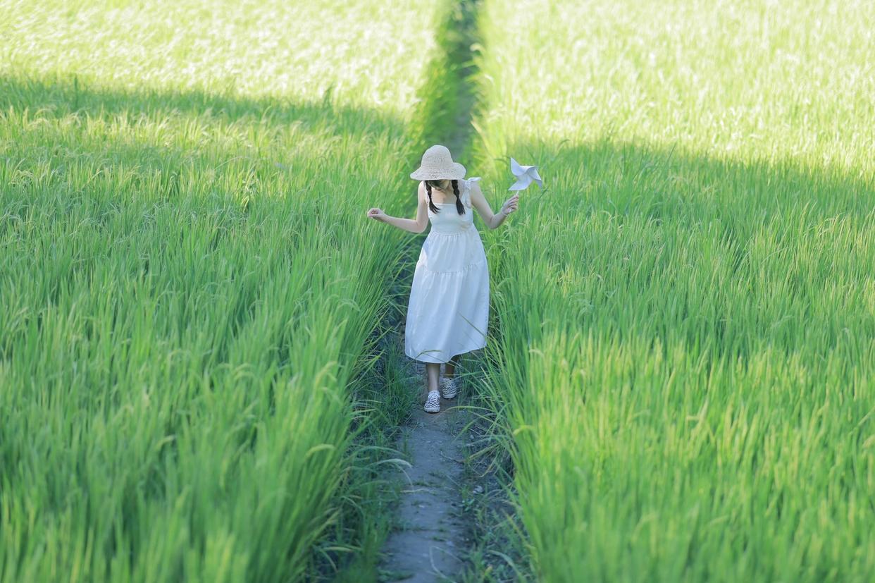 保证背景相对统一,干净且整洁的前提下,让模特在画面中的占比缩小一些,放大环境的占比,更有利渲染氛围和表达情感,同时,也能很好地弥补人物表现力甚至是颜值上的问题,即便不露脸也能拍美照。