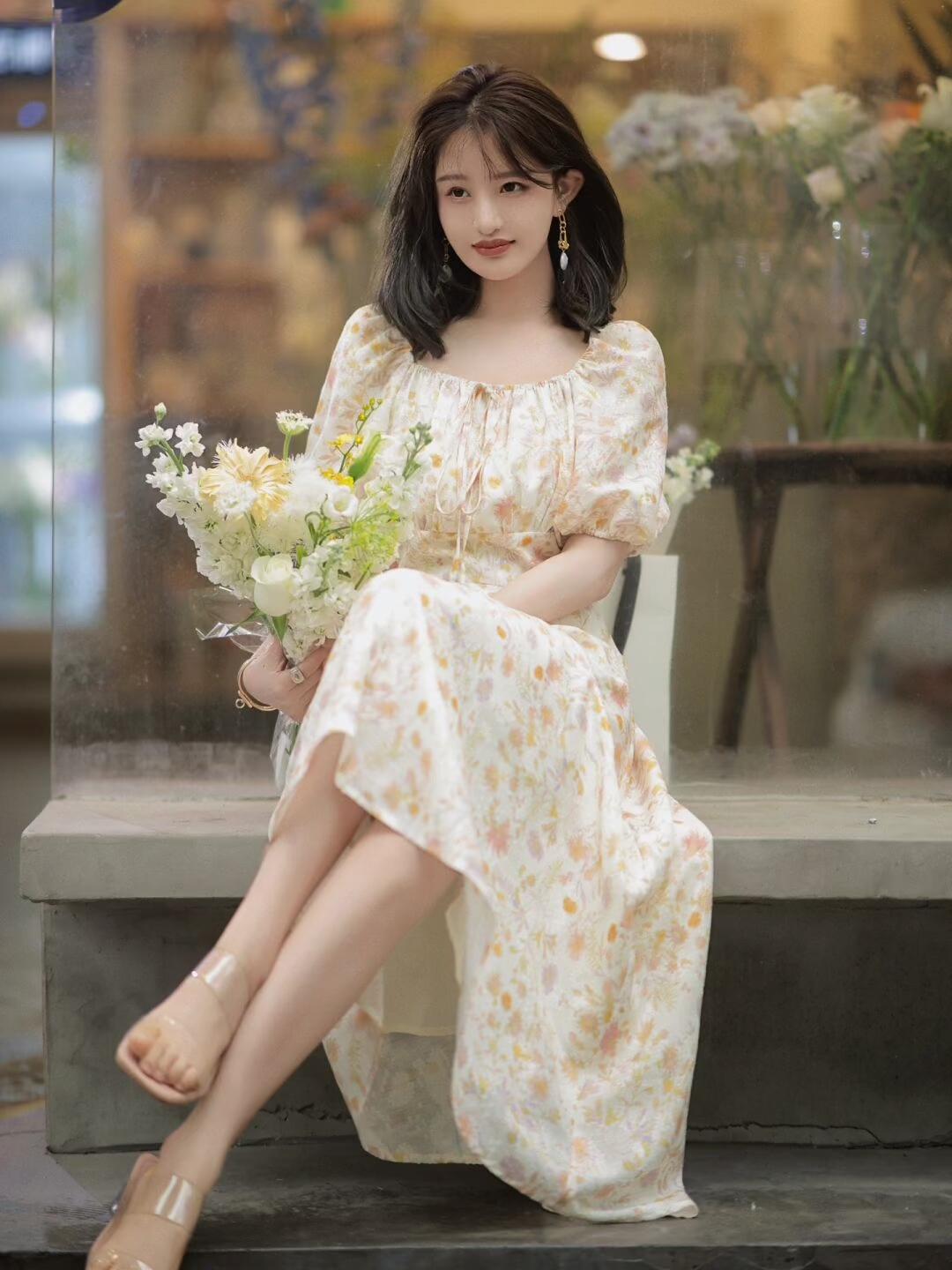 拍坐姿全身照的时候,如何显腿长是关键所在,双腿保持翘二郎腿的动作,上面的腿要轻轻放在下面的腿之上,避免挤出肉肉,此外,如果是穿长裙拍的话,裙摆可以往上提一些,适当地露腿视觉更显瘦。
