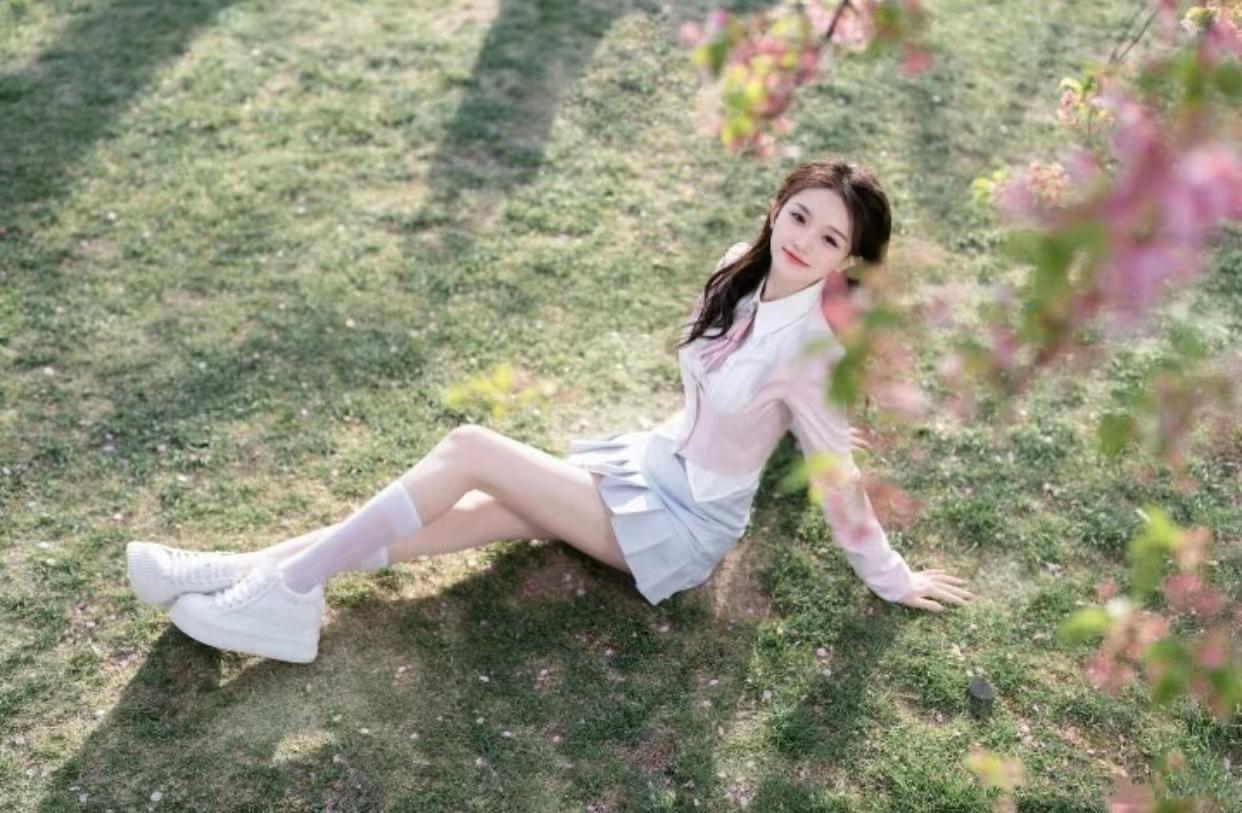在草地、花海、海边、树林取景的时候,可以直接在在地上,让自己沉浸在大自然之中。