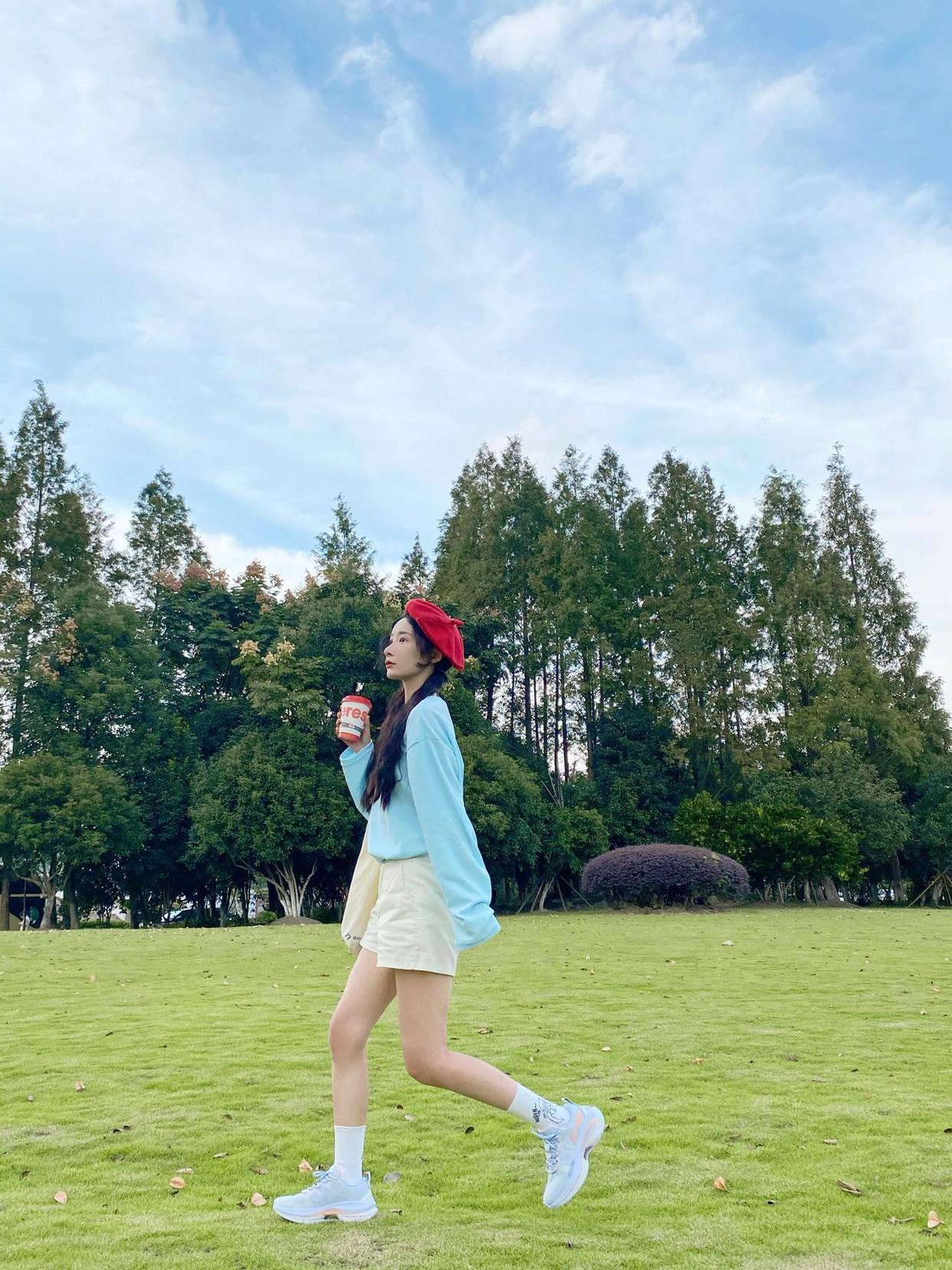 全都是静态的照片难免会有些单调,让人觉得有点视觉疲劳,在拍照的时候,大家可以多尝试动态的动作,比如奔跑、大步走、跳跃等,但人物动起来时,手脚远离了身体躯干,看起来不及显瘦还显身材。