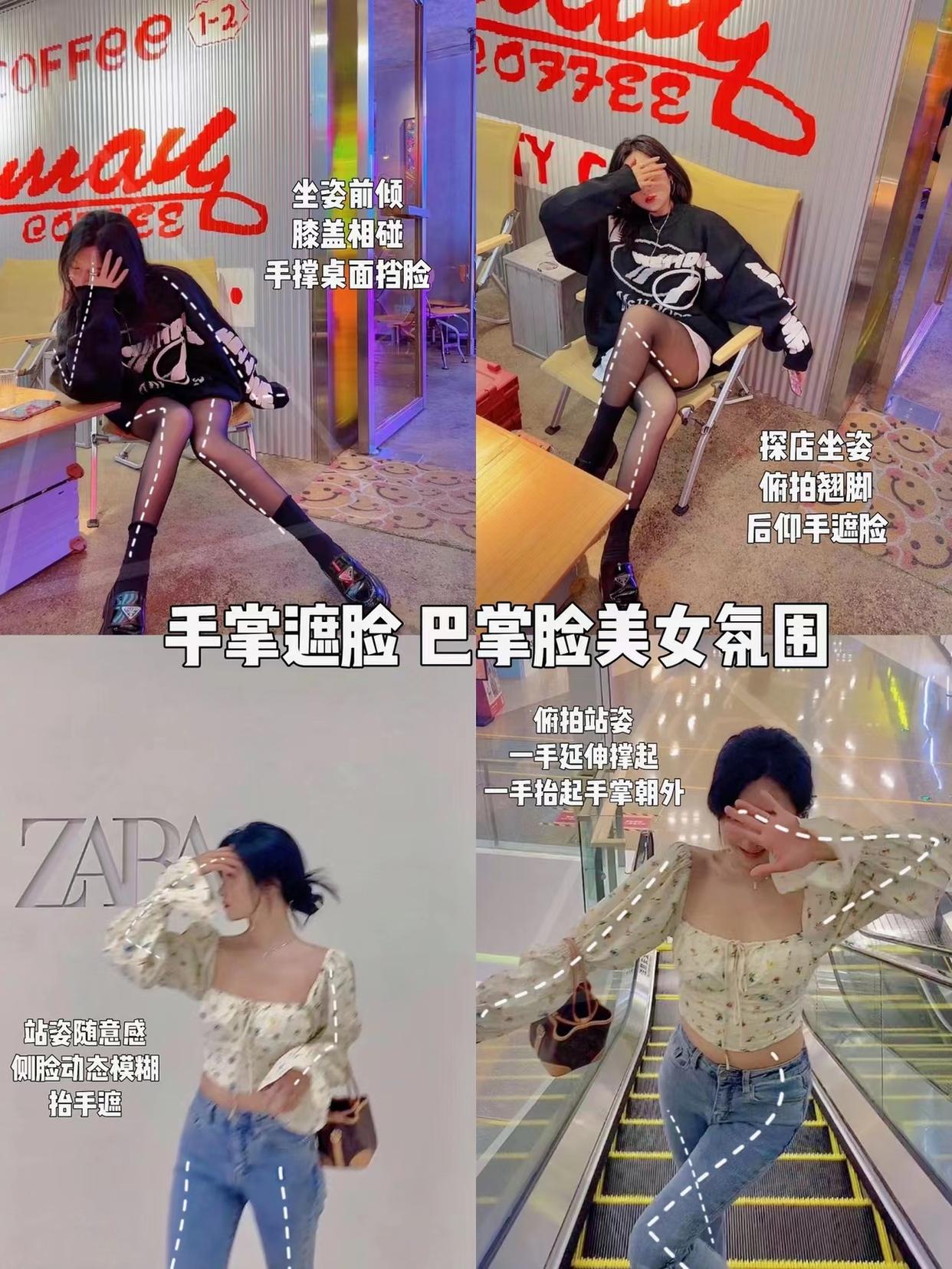 手部动作也可以弥补表现力不足的缺点,用手遮脸,手与脸不要紧贴,保持一个拳头的距离,这样更能拍出巴掌脸的既视感,不论是正面拍还是侧面拍都合适。