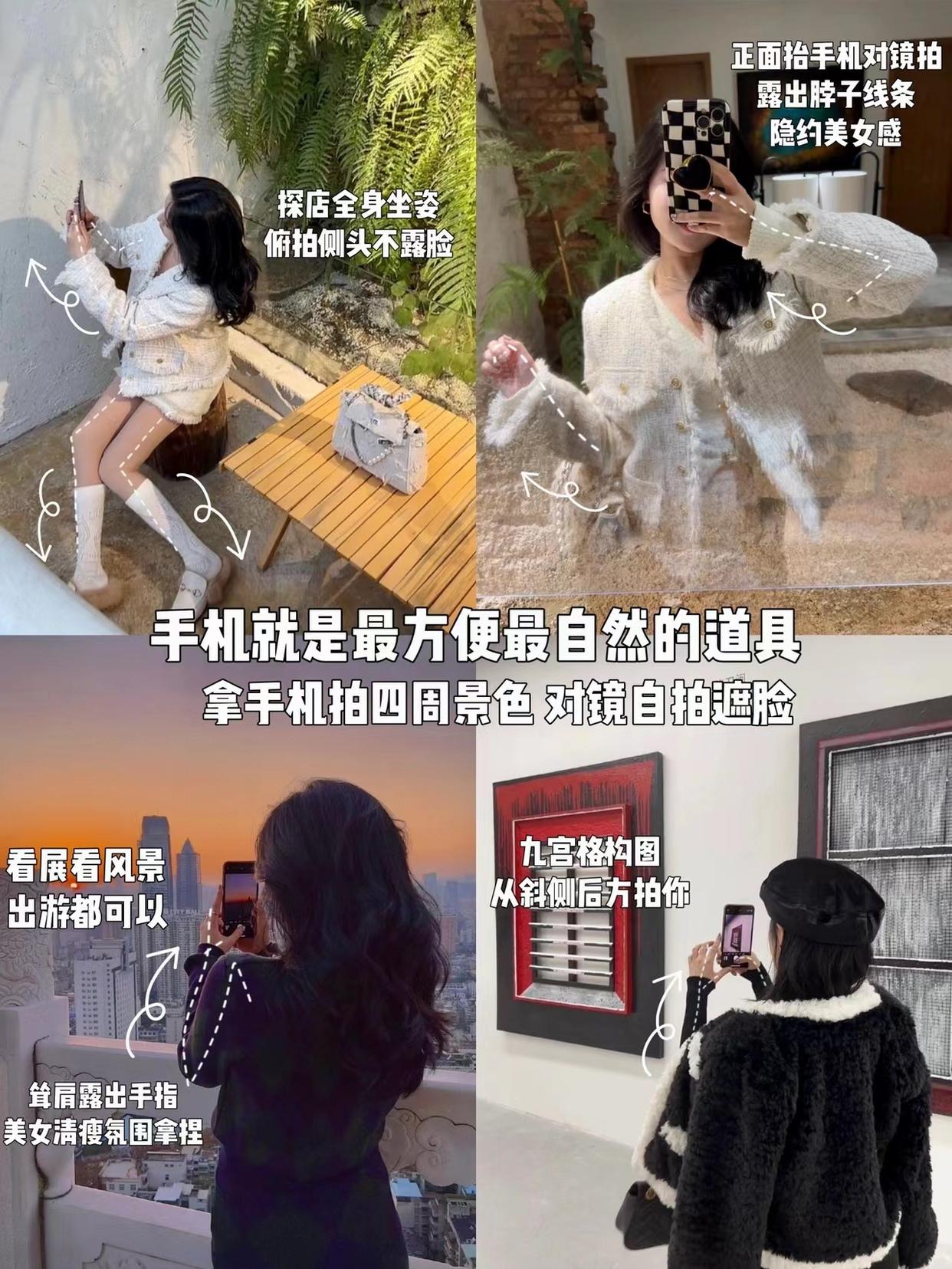 当女生面对镜头时,多多少少会有些不自然、社恐,但其实拍照并不一定要露脸,还是有很多不露脸的拍照姿势可以供大家参考、选择,下面作者便为大家整理出36个不露脸的万能拍照姿势,简约大方,拍照不尴尬。