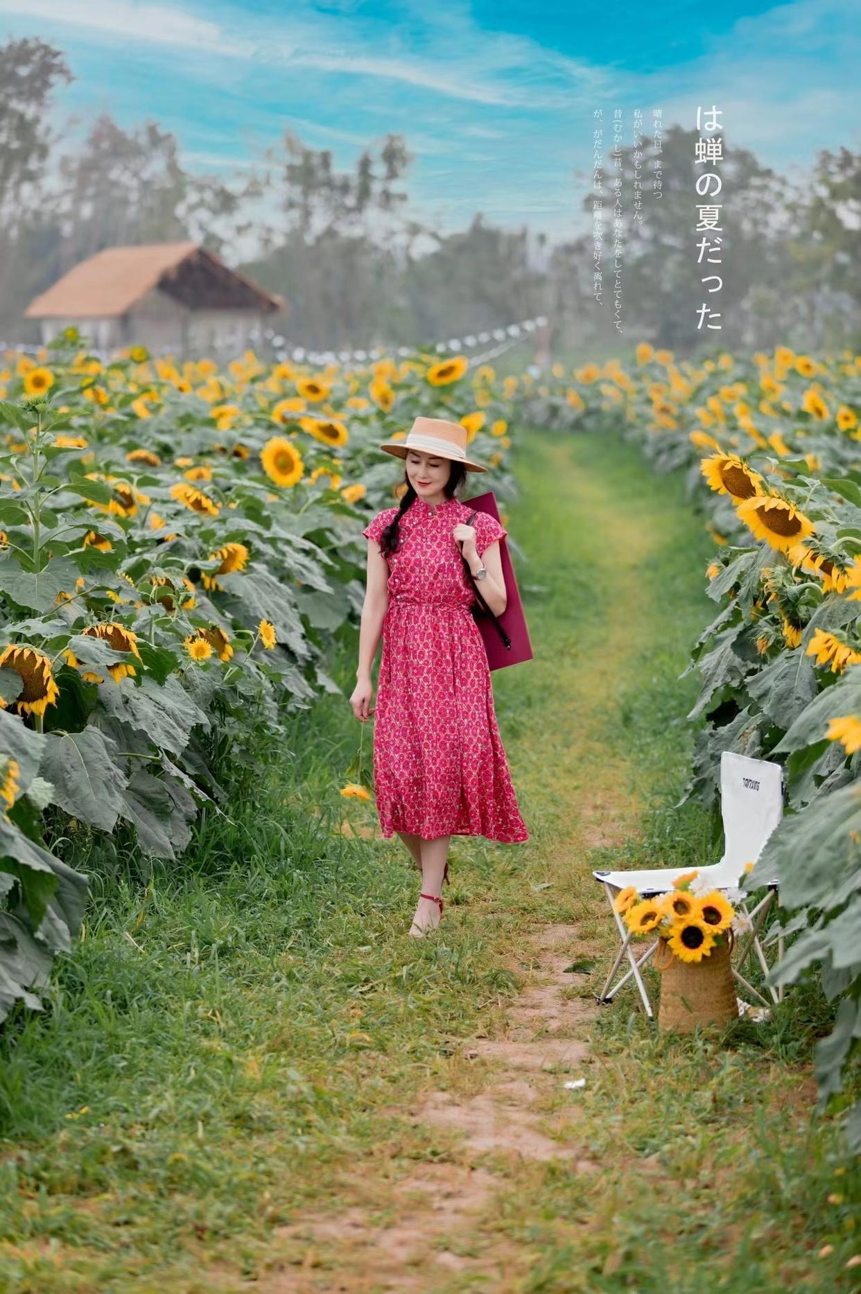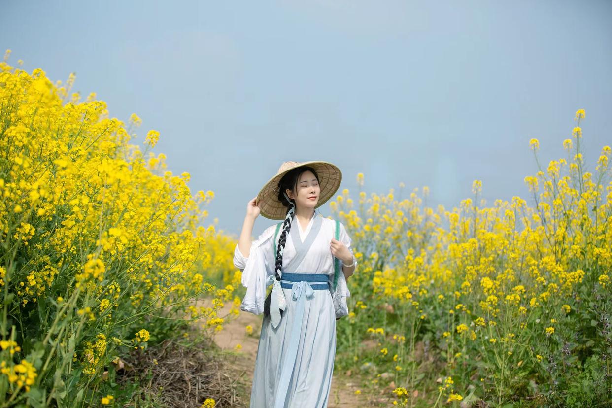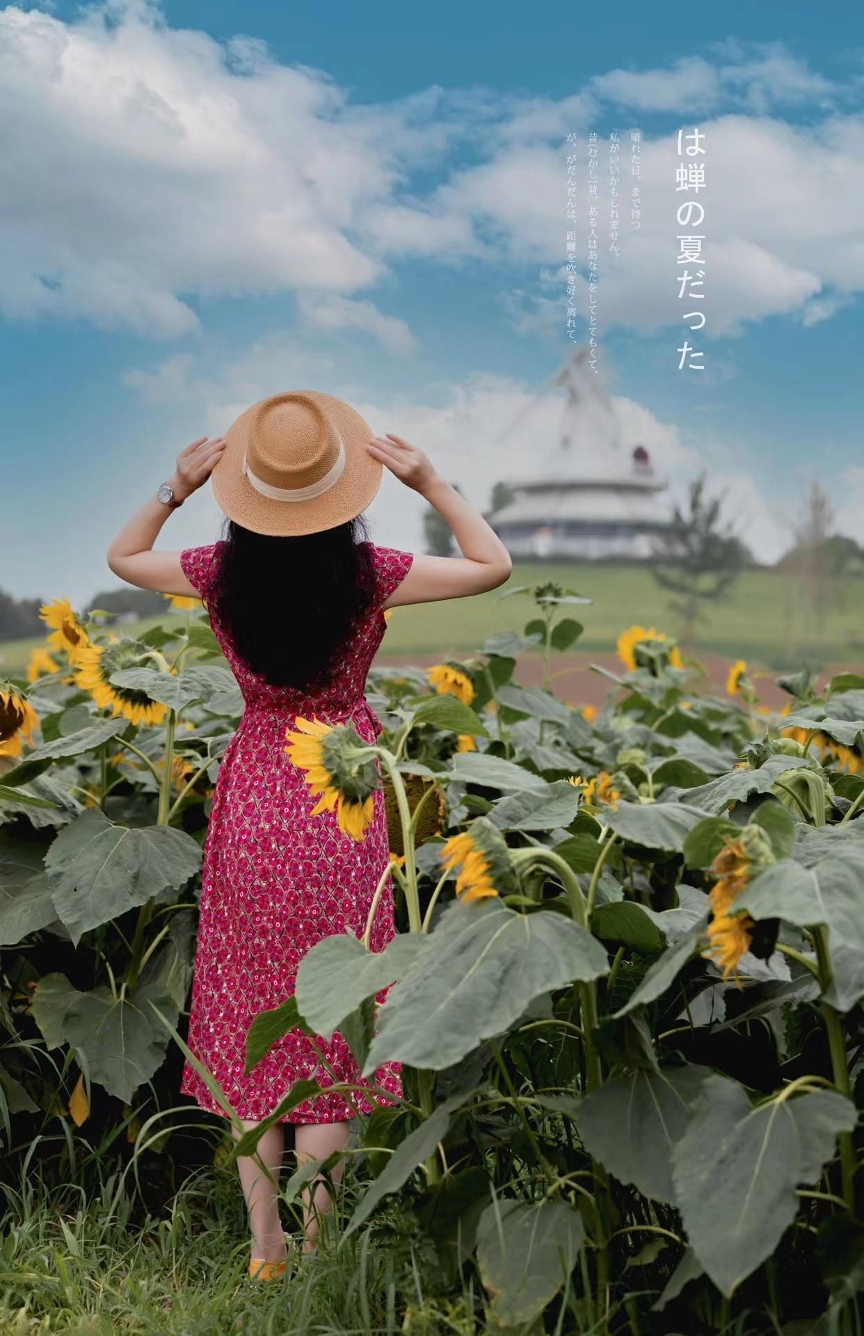 高清的镜头很容易暴露出身材和面部的缺点,所以更推荐姐姐们拍一些背景照,尤其是在花海这么美的环境之中,拍背影照是很合适的。