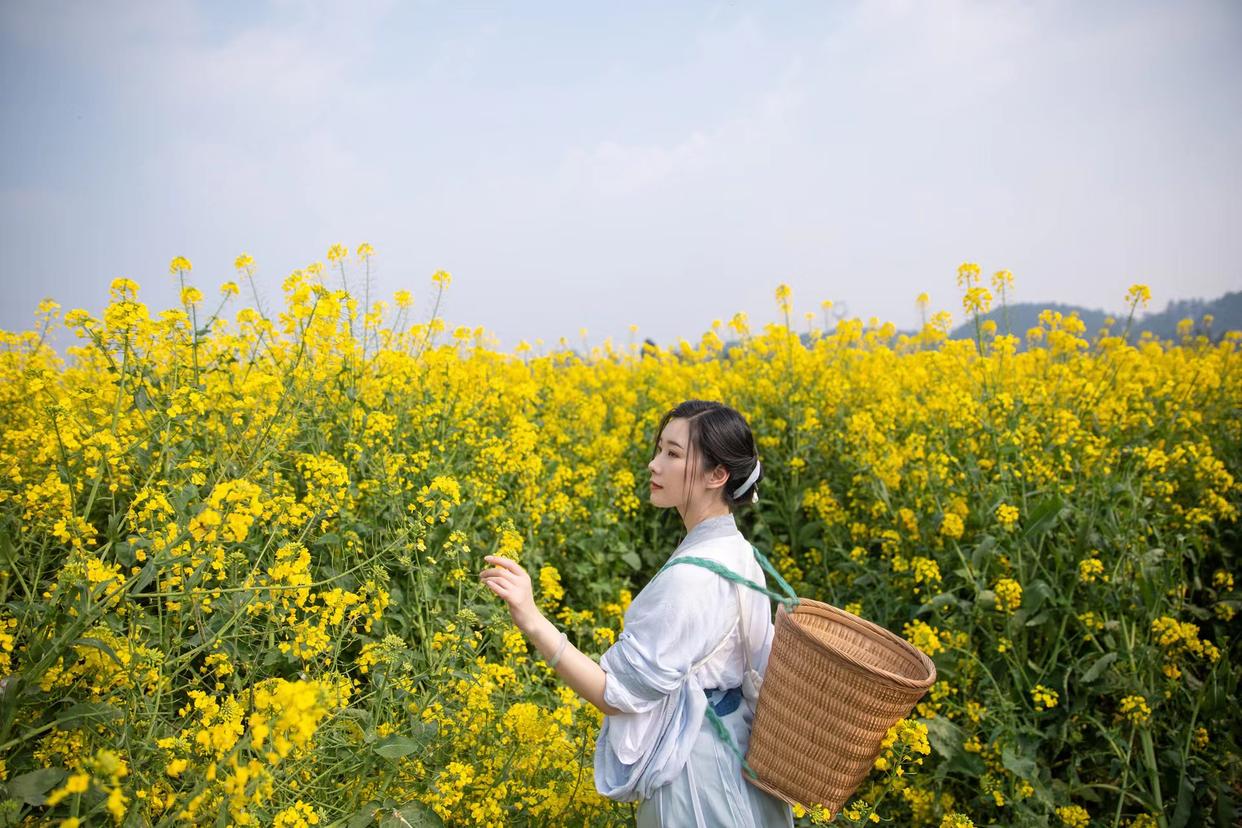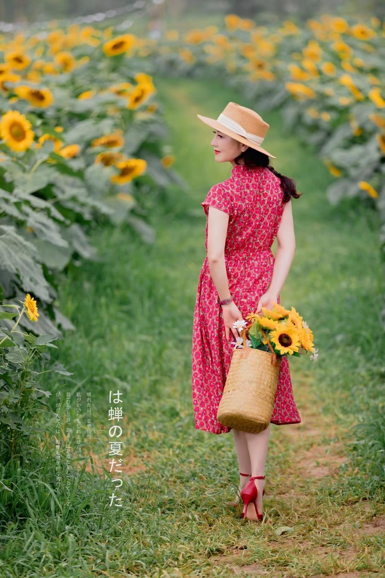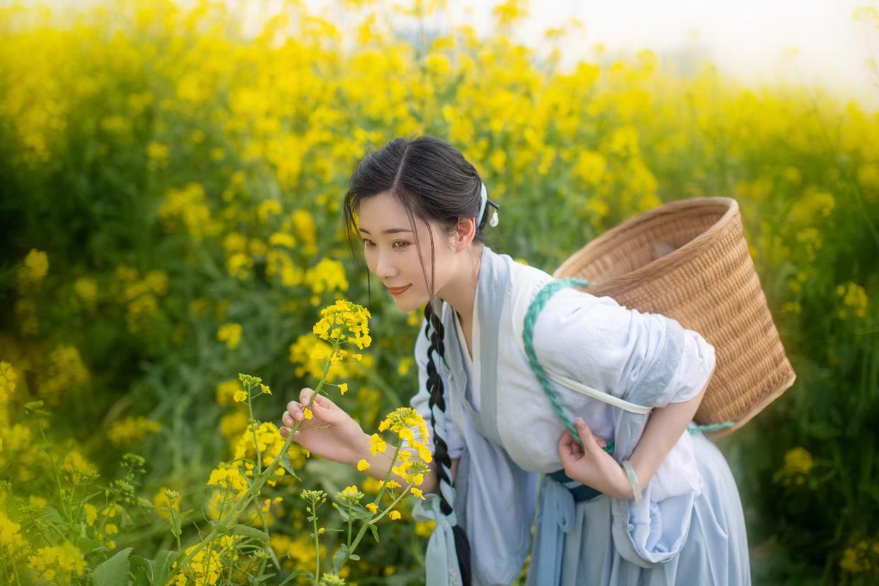 高清的镜头很容易暴露出身材和面部的缺点,所以更推荐姐姐们拍一些背景照,尤其是在花海这么美的环境之中,拍背影照是很合适的。