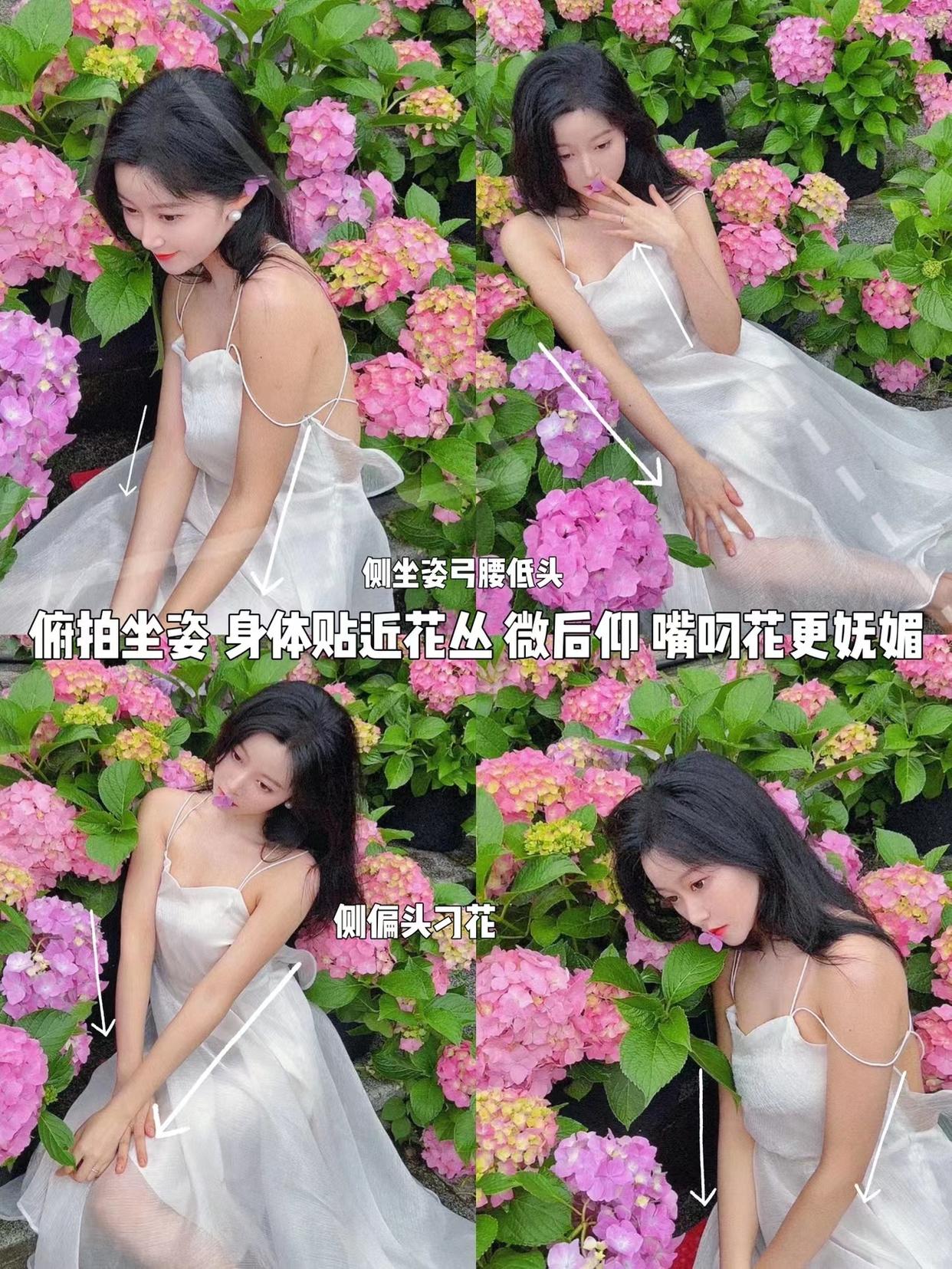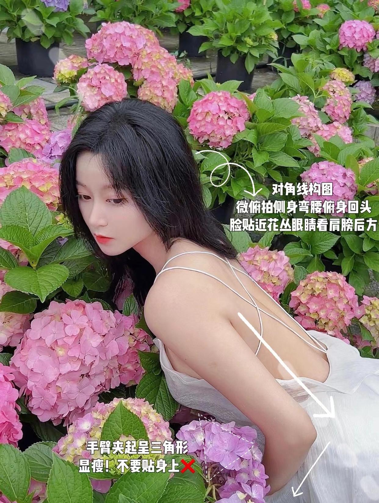 总结:以上便是今天为大家整理出的绣球花氛围感拍照教程,从姿势、角度、机位,教你拍出自然美照,新手也能较快的学会。
