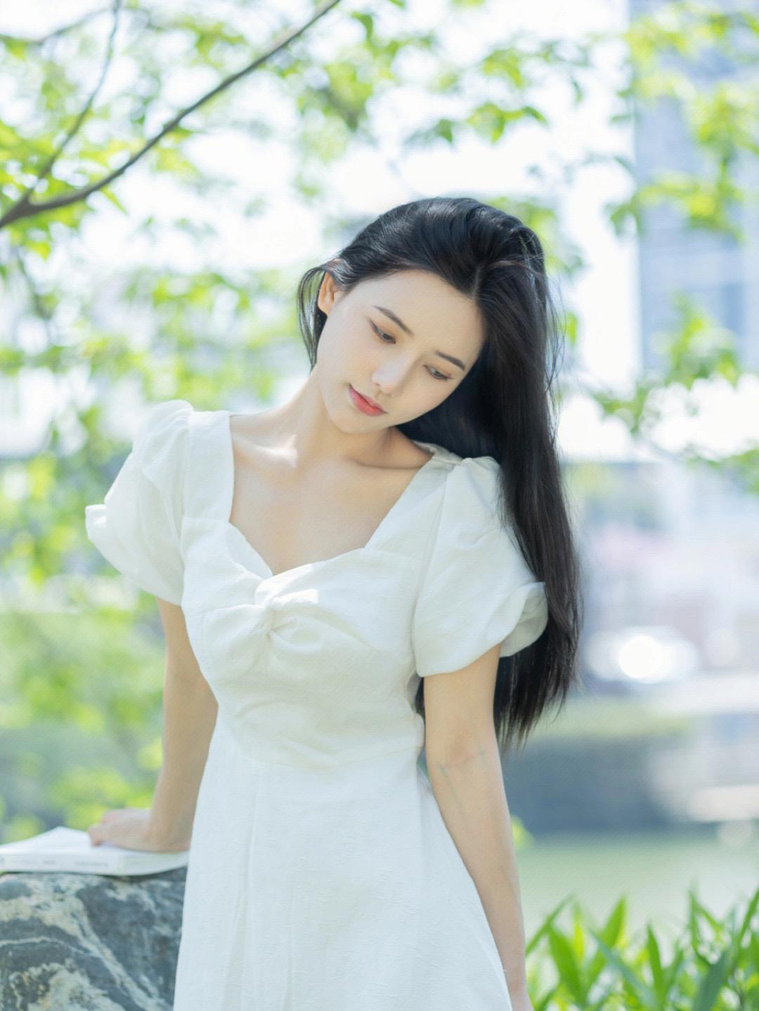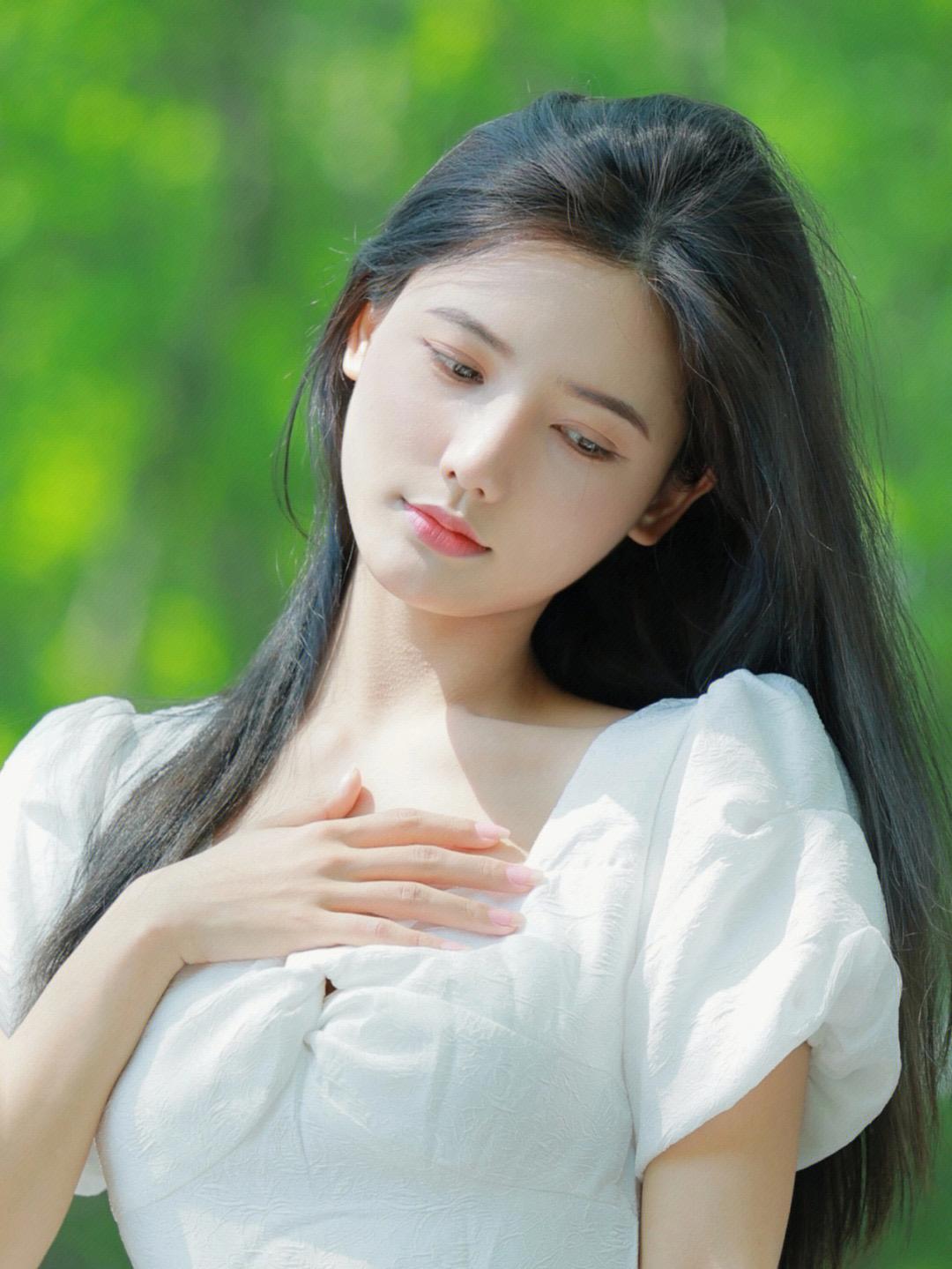 不是所有的女生都有很好的镜头感,而对于较少面对镜头的模特来说,看镜头并不是必备项,学下面的女生一般,头部稍低,眼神自然向下,再把手放于胸口处,给人很温婉的感觉,高级又有气质。