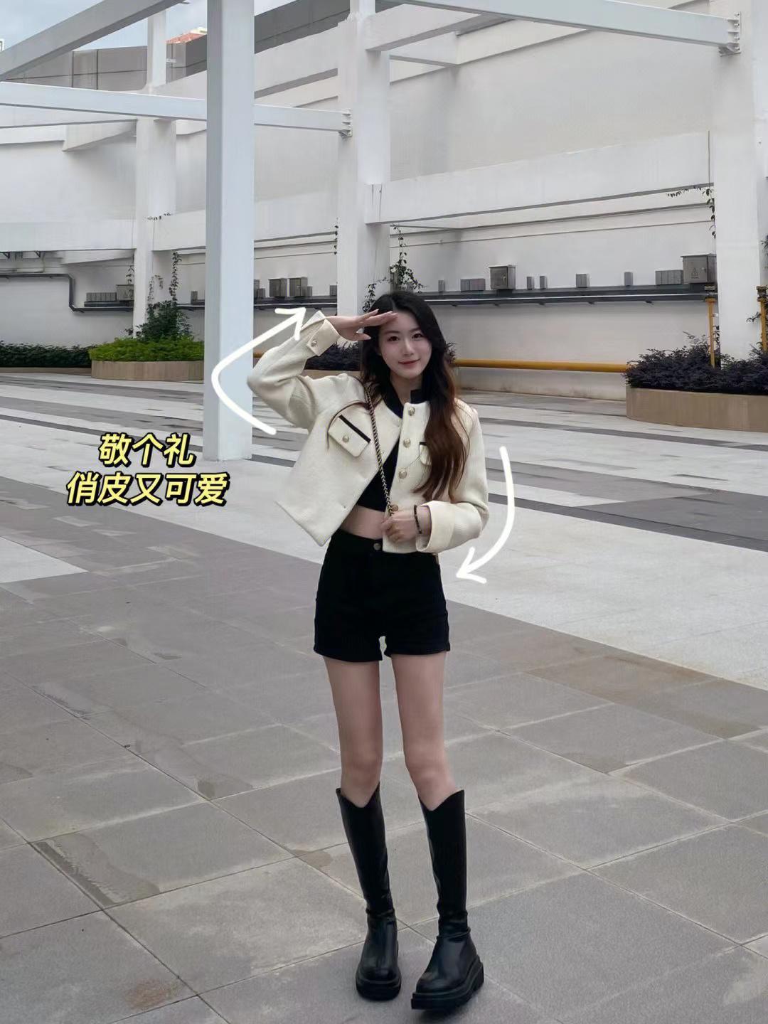 拍全身站姿照,手要尽可能有戏,不要双手垂下,一手揣包包,一手抬手敬礼,不仅能拍出俏皮可爱的画面,也能适当遮挡面部的小瑕疵,让人像更上镜。