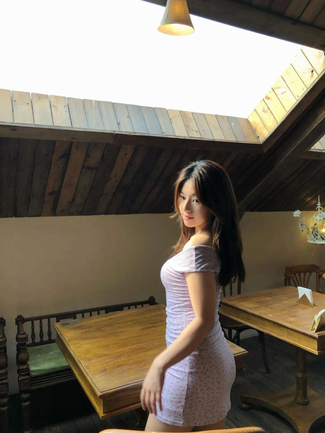 靠窗拍照光线很好,肉肉女生拍照用这个姿势特别出片。侧身靠近窗边或者玻璃,身体略微俯下,头回一边看镜头,笑容浅一点。这个角度能拍到锁骨线、颈部线条、身材曲线,显得气质温婉,也很显身材比例。