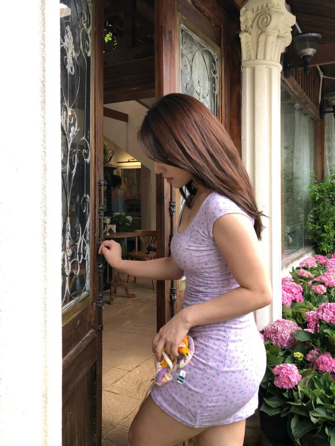 拍日常感照片时,这个动作就很好用。肉肉女生拍照,可以抓拍走进门的瞬间,侧身跨步走,头自然低下来,看向地面。整个动作自然、不做作,给人一种温润又有点慵懒的感觉,很适合拍生活氛围照。