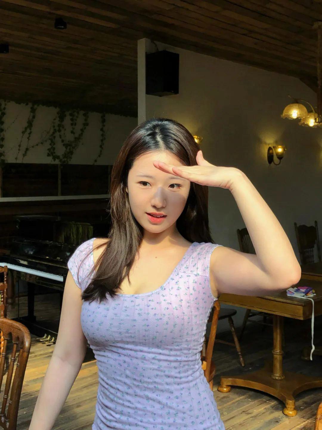 拍点俏皮感,肉肉女生也可以尝试这种。双腿交叉站会拉长身形,双手自然张开不贴身,脸上可以做个小动作,比如轻轻吐下舌头,带点笑意,这样的照片会有灵气,既可爱又有一点点欲感。