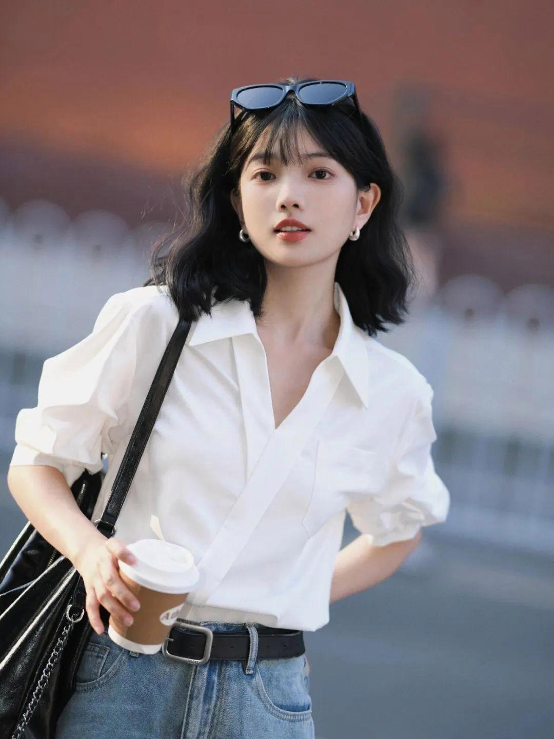 站在街角或人行道边上,一只手插兜,另一只手拿着咖啡。动作简单但很有型。衣服选择宽松一点,有复古感的颜色会更出片。这个姿势不需要看镜头,自然看一侧也很好看。