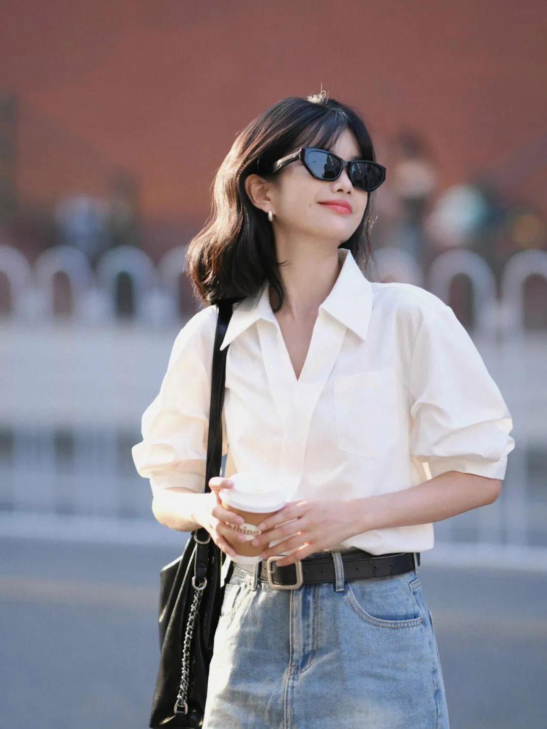 穿复古长裙或休闲牛仔裤,站着拍照的时候一条腿微微弯曲,身体轻松些。抬手扶一下墨镜,不用真的遮太阳,只是一个小动作。配合街头背景,瞬间有种电影感。