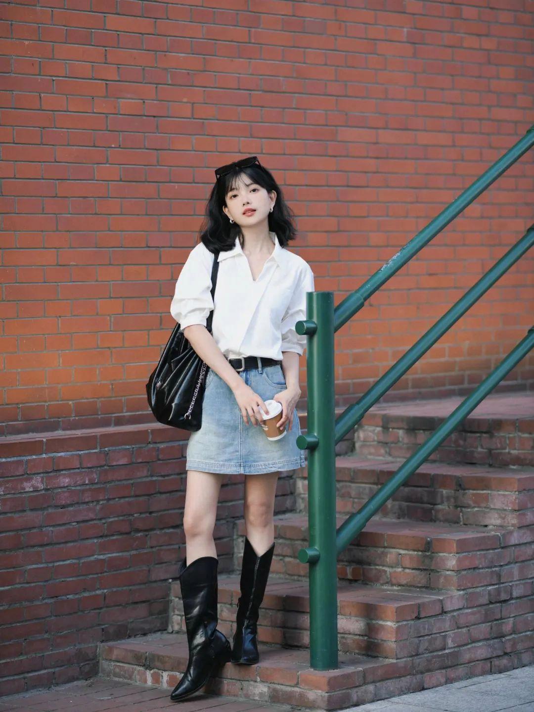 在台阶上拍照,踩一阶站高一点,一条腿弯曲自然站着。一手拿咖啡,轻轻歪头看镜头。这个角度能拍出层次感,而且显身材比例。配合一些复古建筑背景,照片更有感觉。
