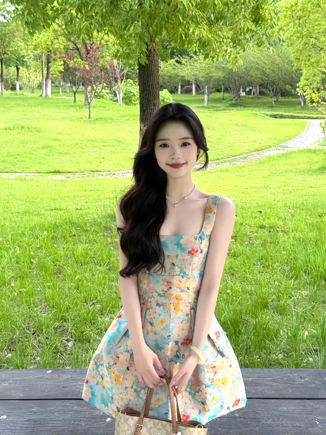 长椅前站姿拍照要避免太呆板,双手拿包包自然站着,眼神对准镜头,笑一点点,不需要太大幅度,照片就很清新舒服。公园光线柔和,人物容易上镜。