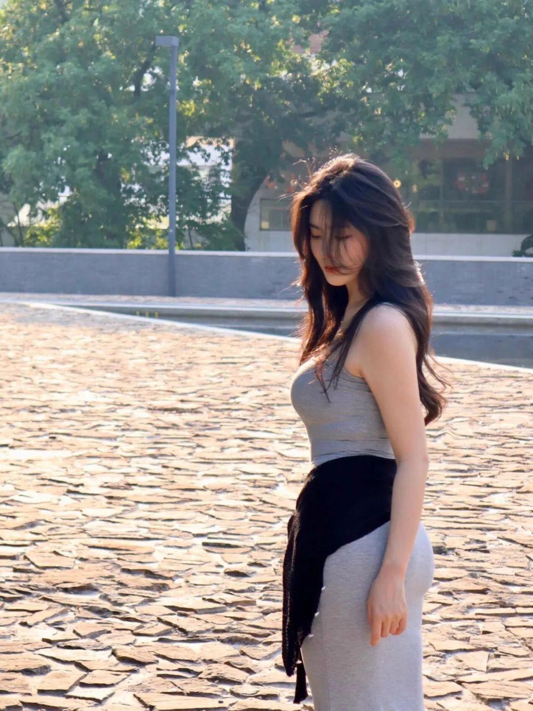 拍长裙,不一定要正对镜头。站成侧身角度,轻轻低头,让头发落下来,顺便拍出侧颜。这个动作特别适合修饰脸型,显得精致有神秘感。长裙的线条会沿着身体流下来,显瘦又很显身材,气质感满满。