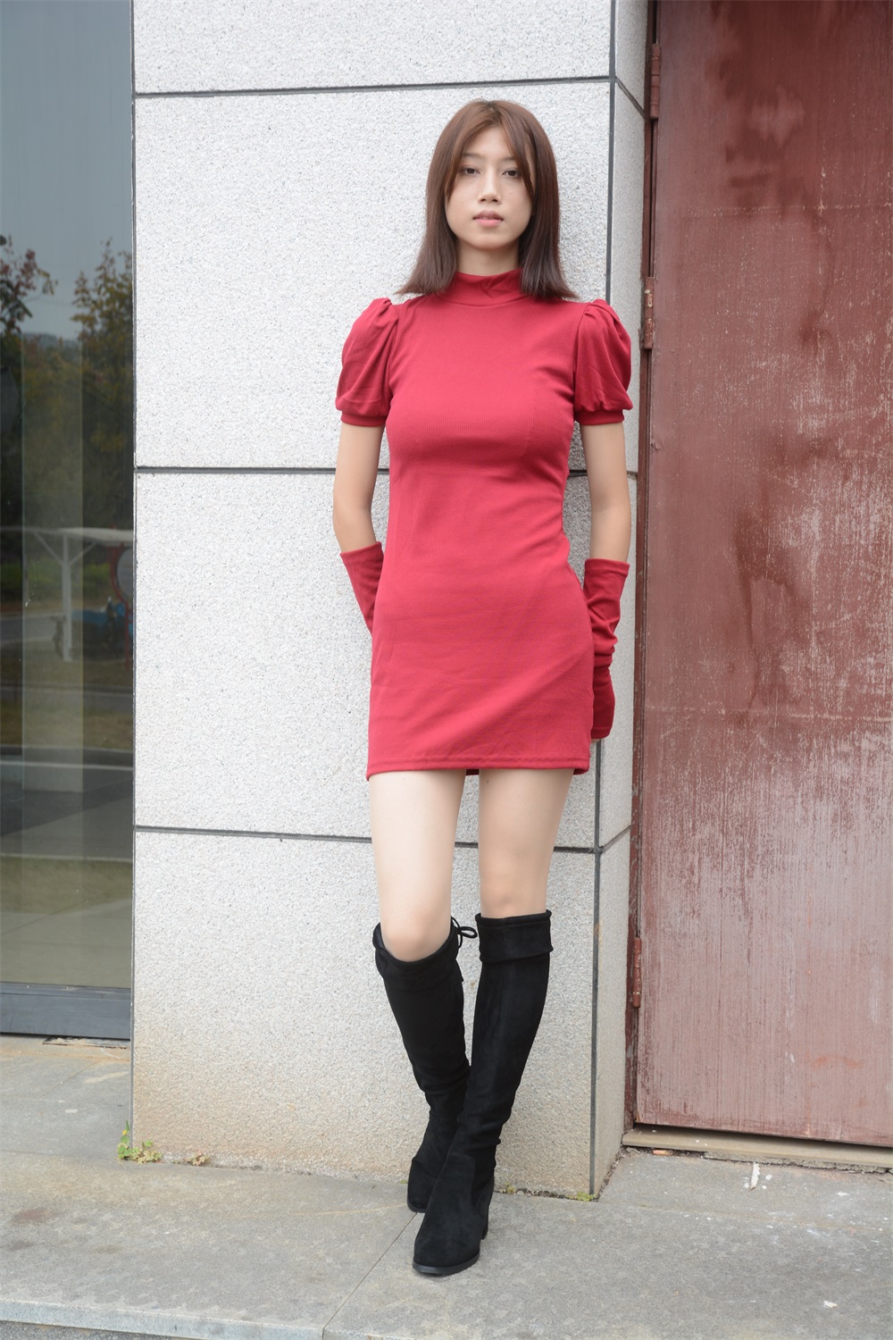 服装:秀秀红色连衣裙、恰恰酒红色JK套