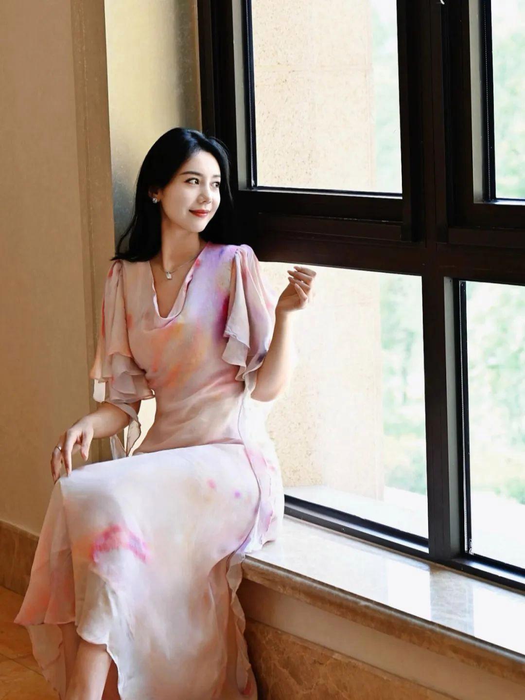 穿裙子拍照时,利用窗台是个很有氛围感的方式。侧身靠着窗边,身体轻轻靠住窗沿,头转向窗外微微一笑。自然的光线透过窗户洒在脸上,整个画面就会显得非常温柔,有气质。