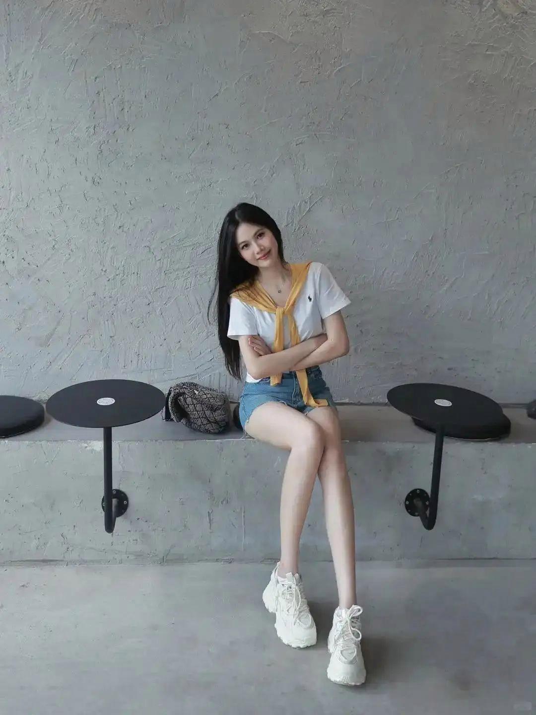 牛仔裤拍站姿照也可以加些坐姿变化。坐着时双腿往镜头方向自然延伸,这样会把腿拍得特别长。双手抱胸,歪头笑,姿势简单但很有个性。上半身稳定,下半身拉长,整体非常显高显瘦。