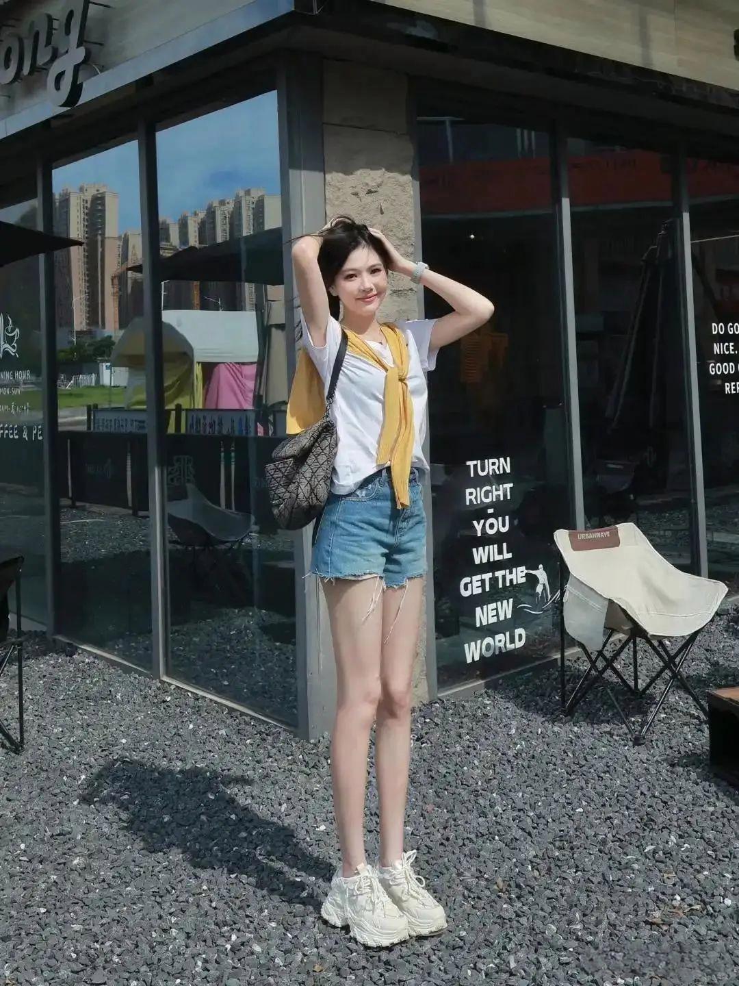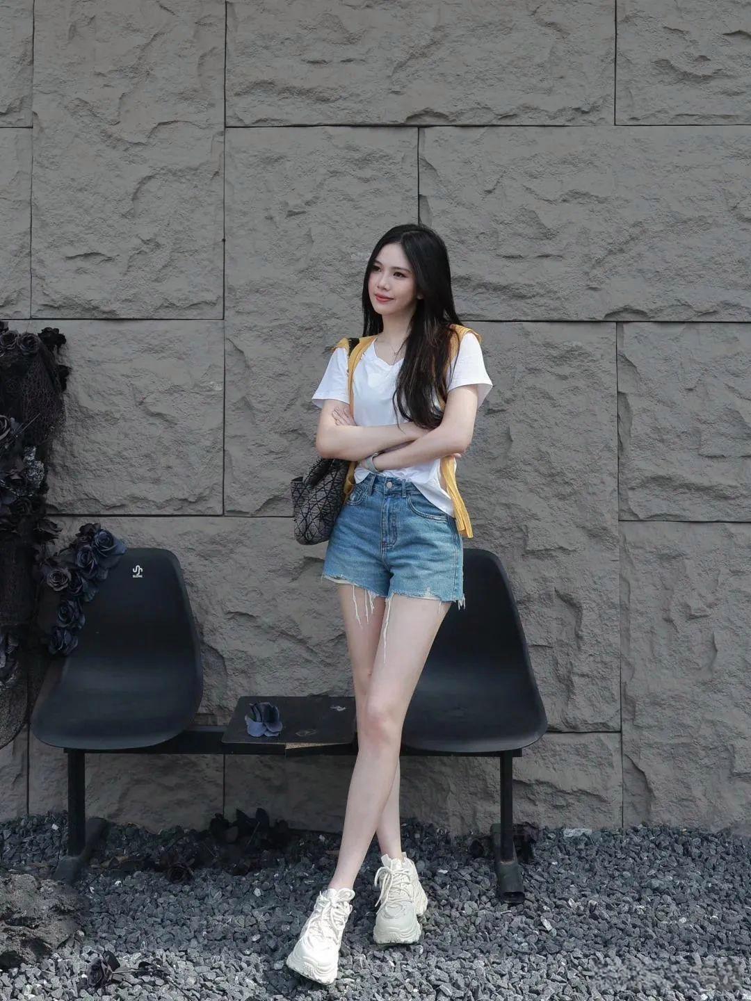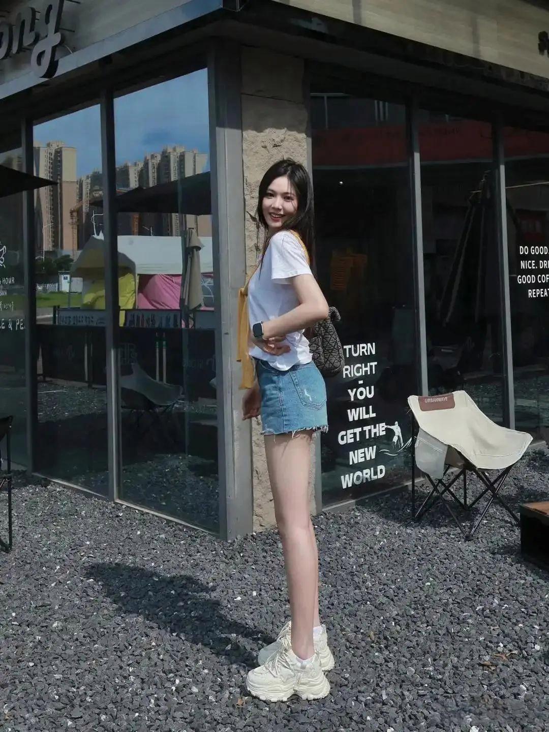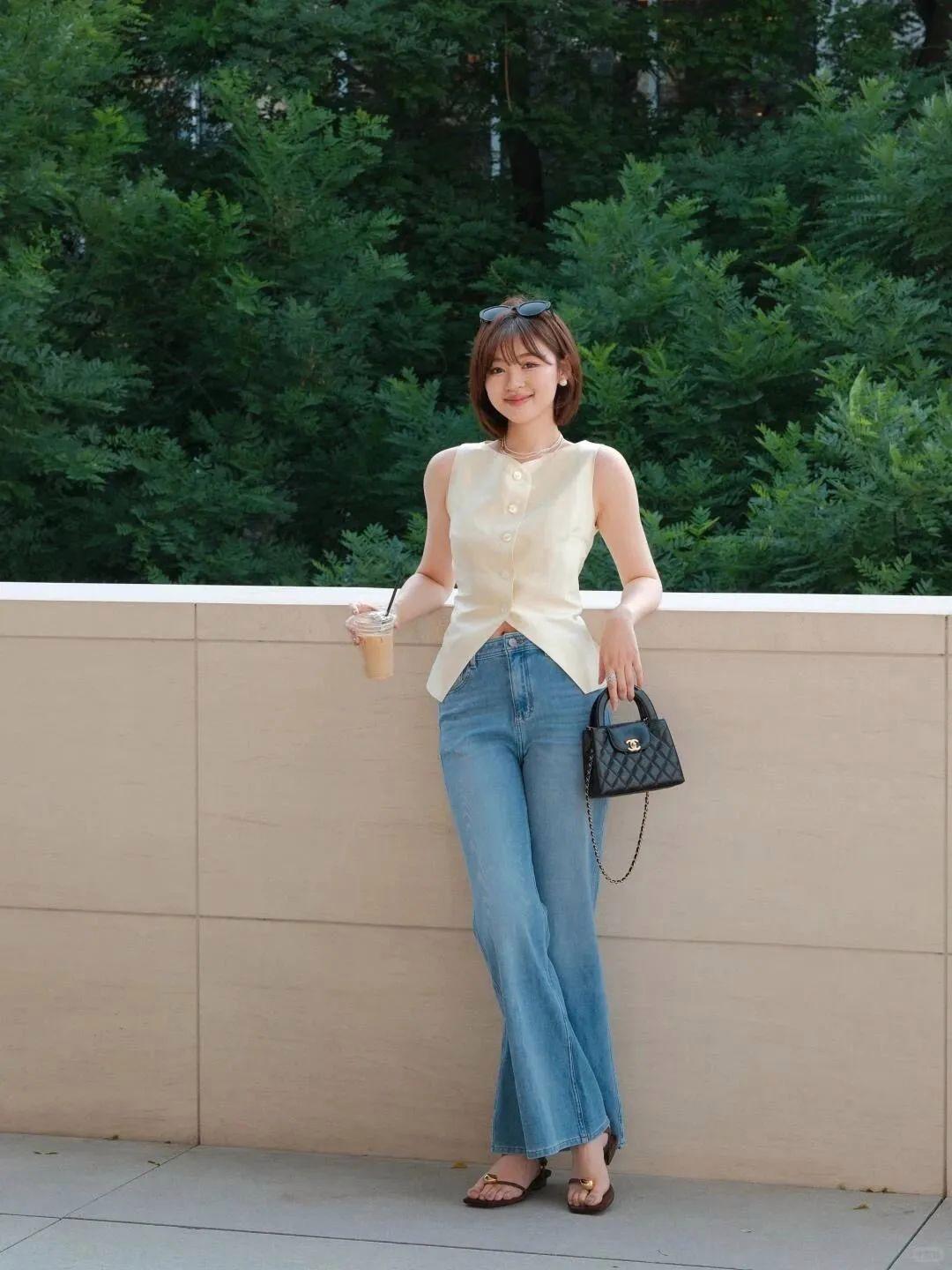 牛仔裤拍站姿照,加一个包包会更有造型感。站姿时身体微侧,单手挎着包,自然回头笑。动作不要太僵,眼神随意一点,照片氛围感更足。这种搭配让整个人看起来又高又瘦,笑容也更真实好看。
