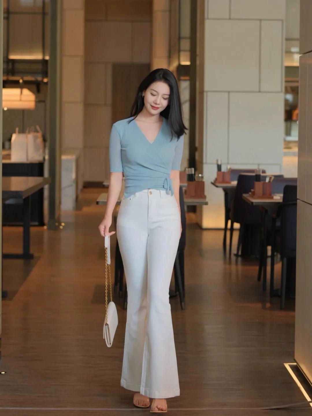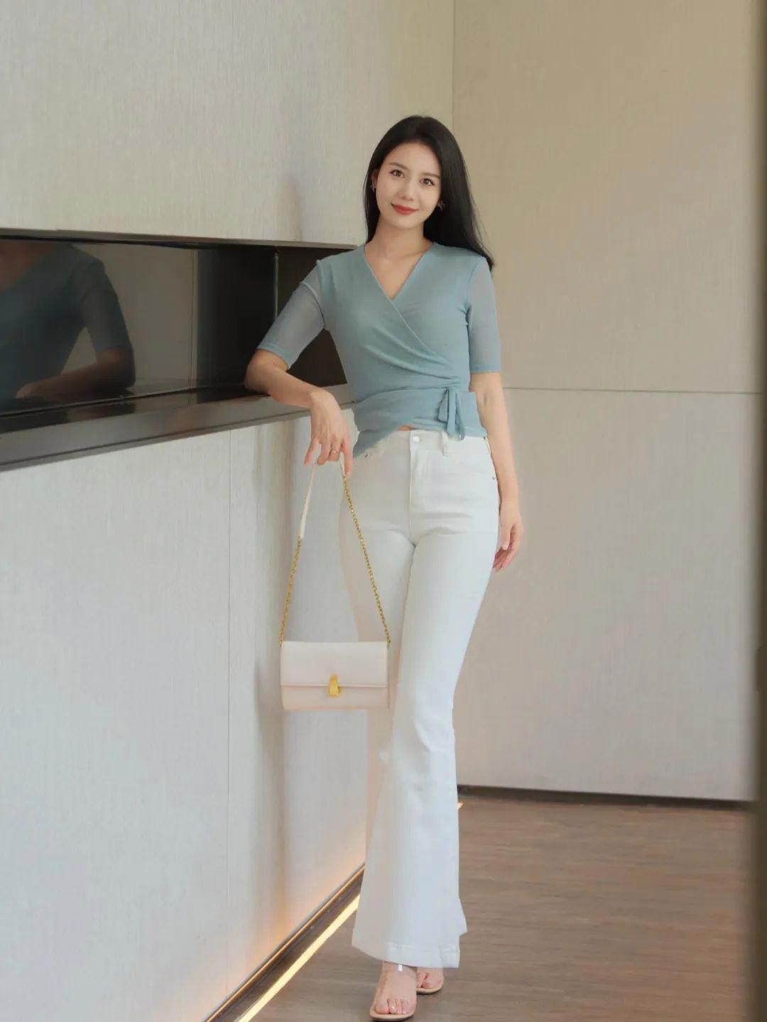 全身照拍照时,加一点动态会更真实。一边走一边拍,单手提包自然摆动,低头一笑,抓拍瞬间特别有生活感。这个姿势特别适合在咖啡店、随意又好看,腿长又有好身材。