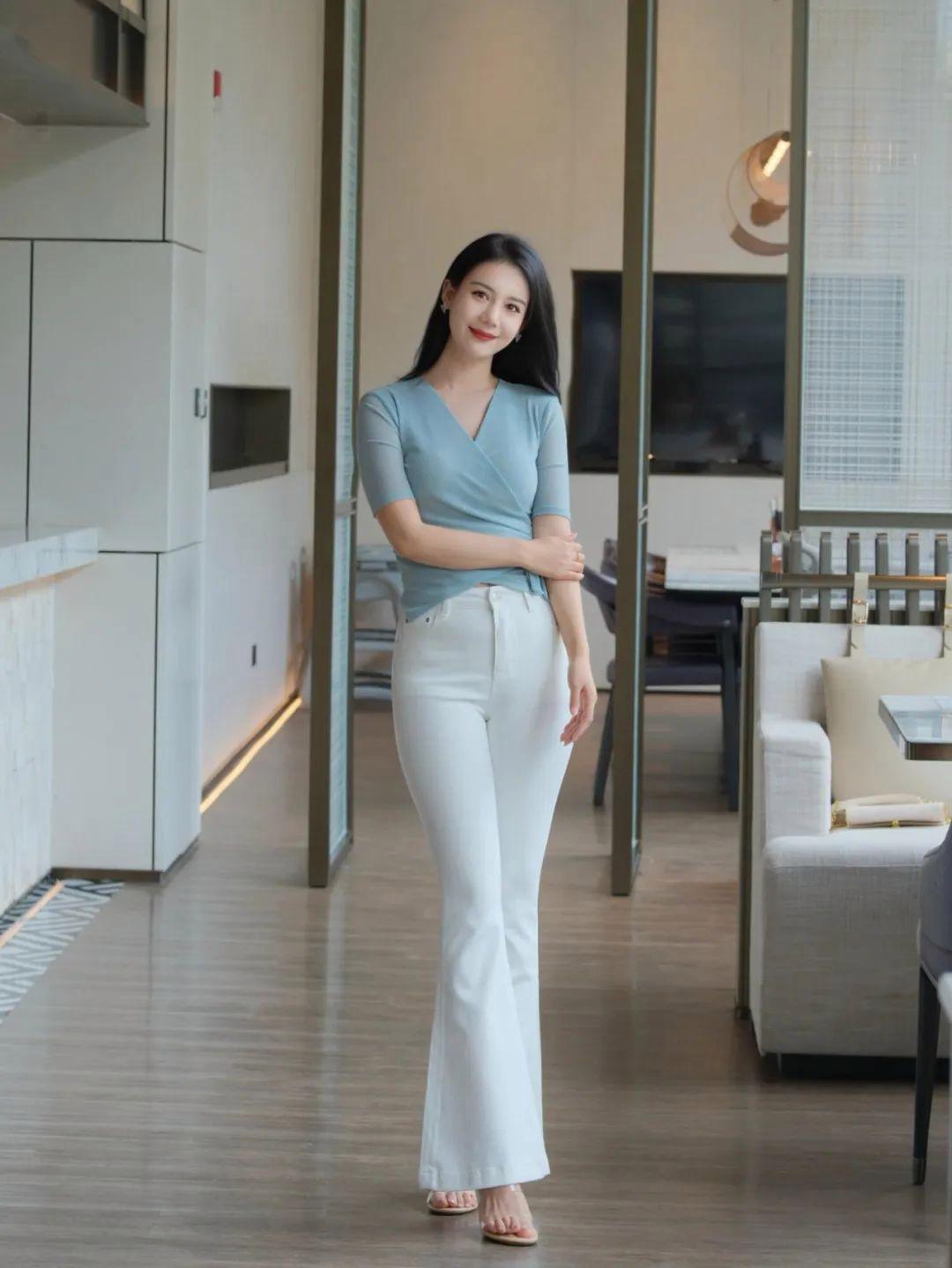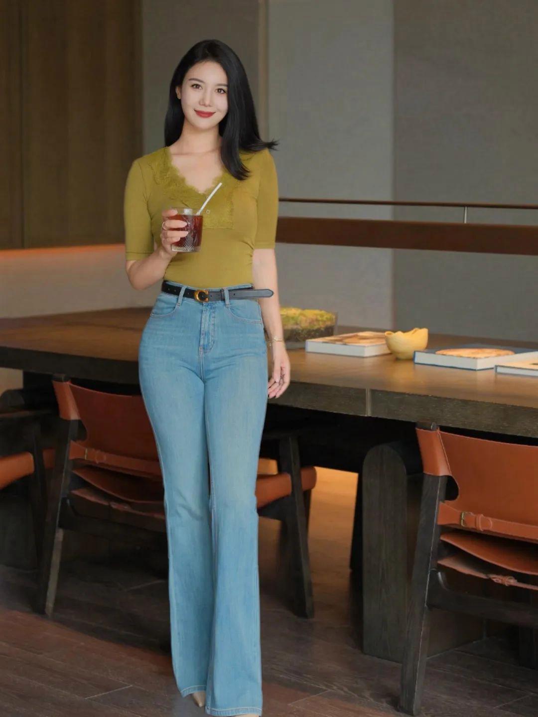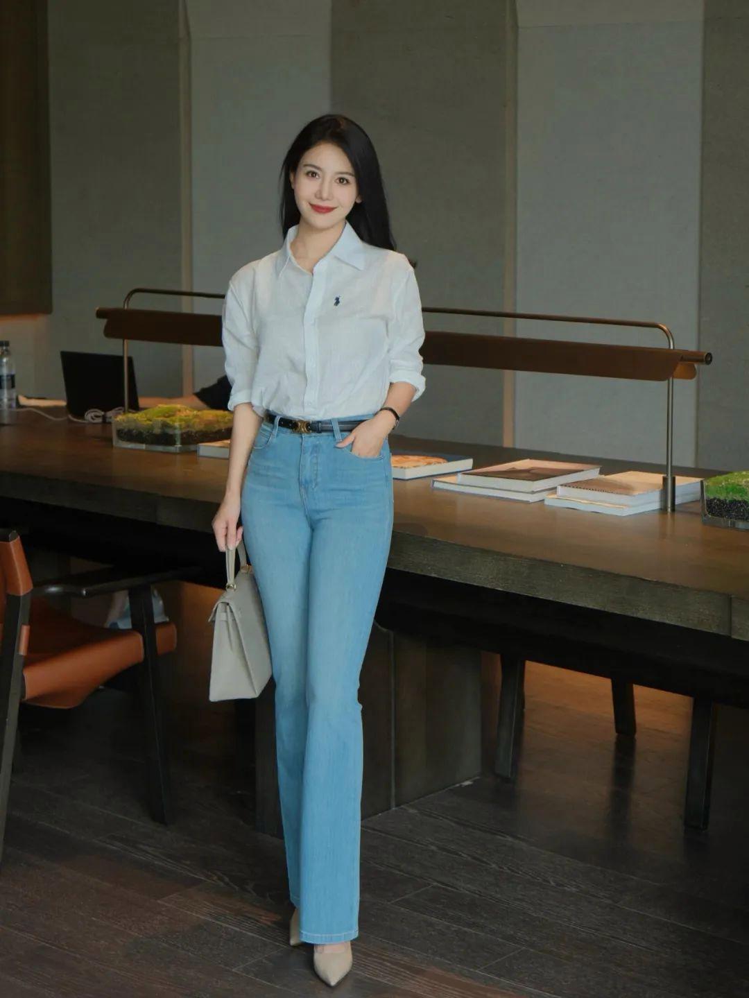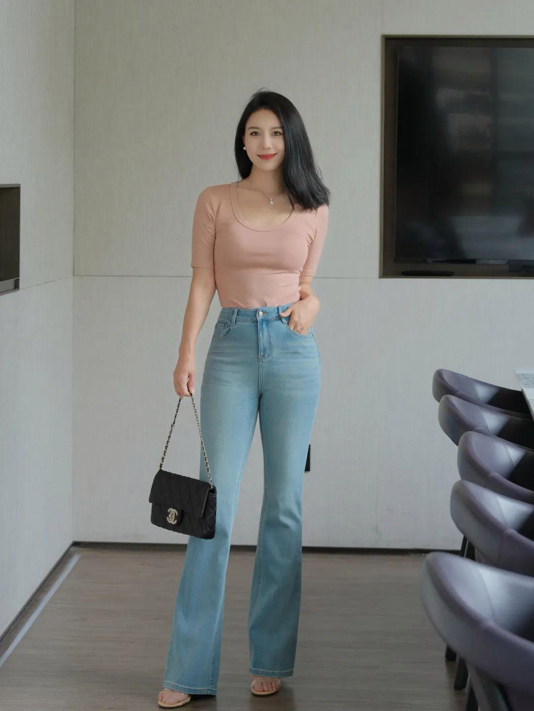 站立拍全身照,想拍出时尚感,这个姿势就很好用。一脚往外轻轻跨出去,重心往一边偏,单手插兜看镜头,简单干练还显得腿长。这个姿势特别适合搭配牛仔裤,随性又高级,腿长身材好。