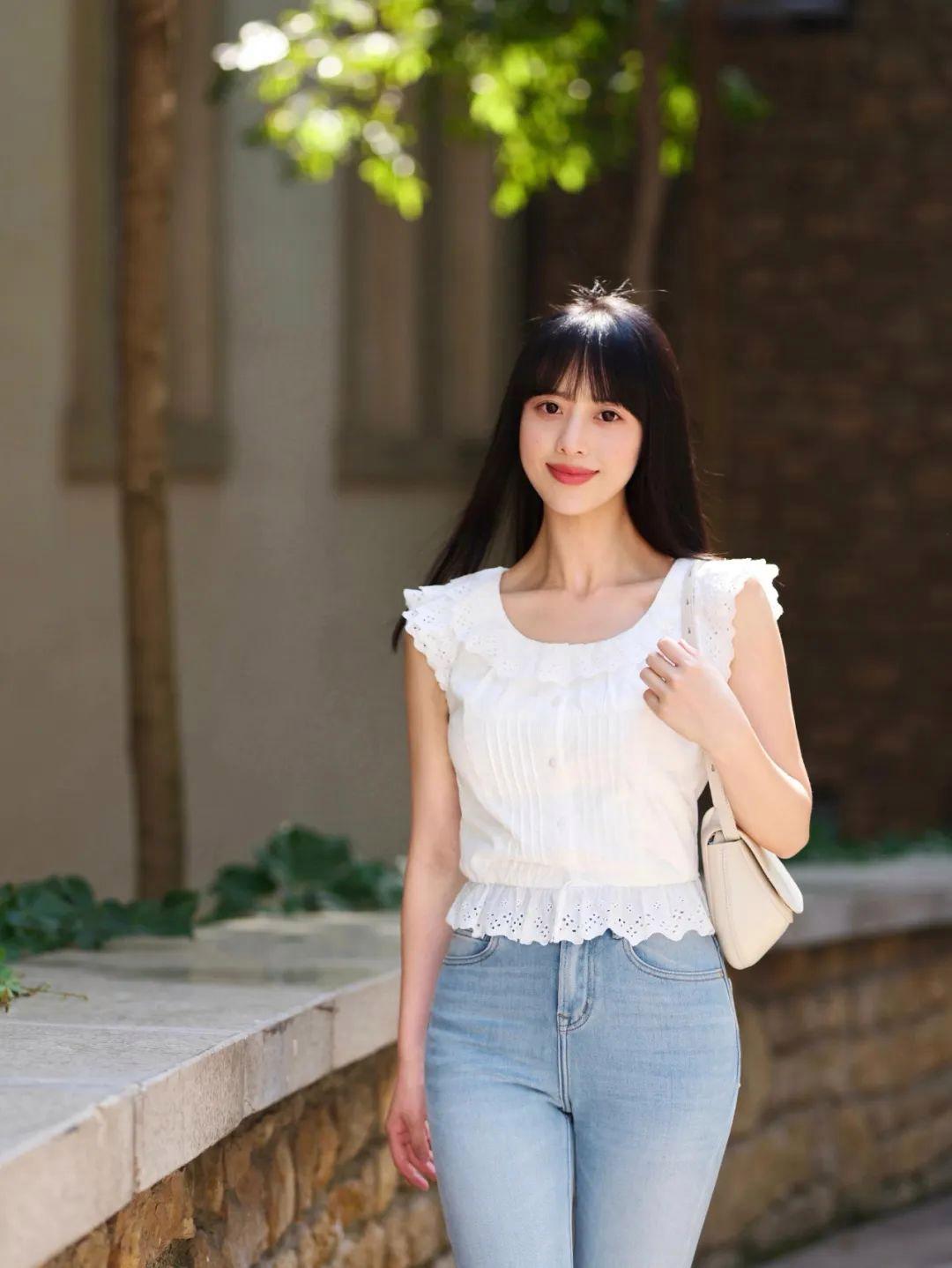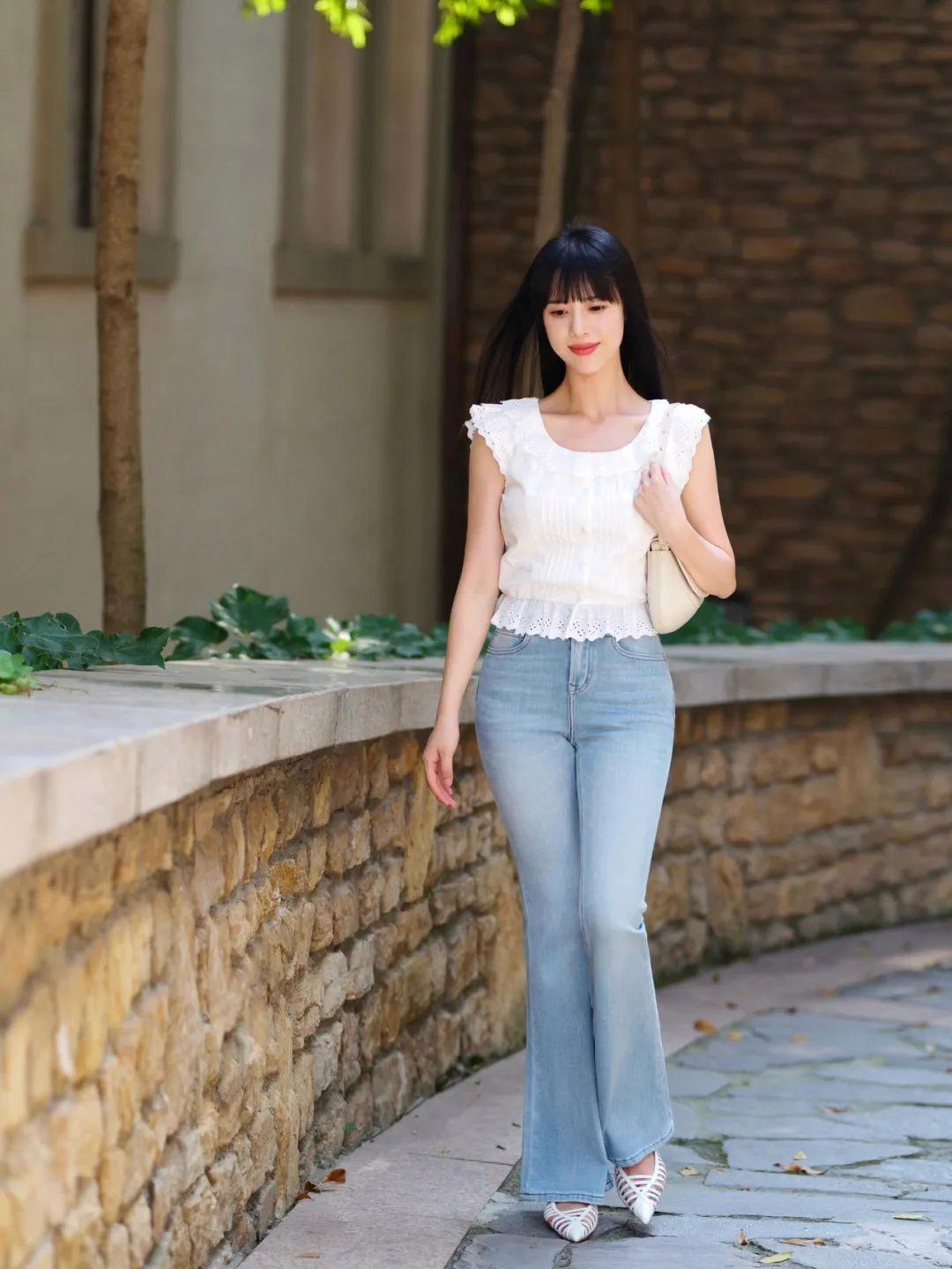 牛仔裤+白T,是最经典不过的日常穿搭,简洁、干净、耐看,还能轻松展现出时尚漂亮的气质。不过很多人在这种基础穿搭下拍照时,总觉得普通没亮点。其实,只要掌握一些实用的拍照动作,再配合牛仔裤搭配白T拍照,不仅能显得人苗条有身材感,还能拉长比例,轻松拍出大长腿。