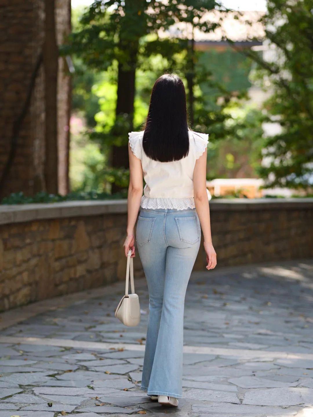 牛仔裤搭配白T拍照也可以选择完全背对镜头,向前跨步走路,让摄影师在你走动时抓拍瞬间。这种方式最能体现衣着的线条与腿部比例,特别适合想拍出大长腿和自由感的女生。