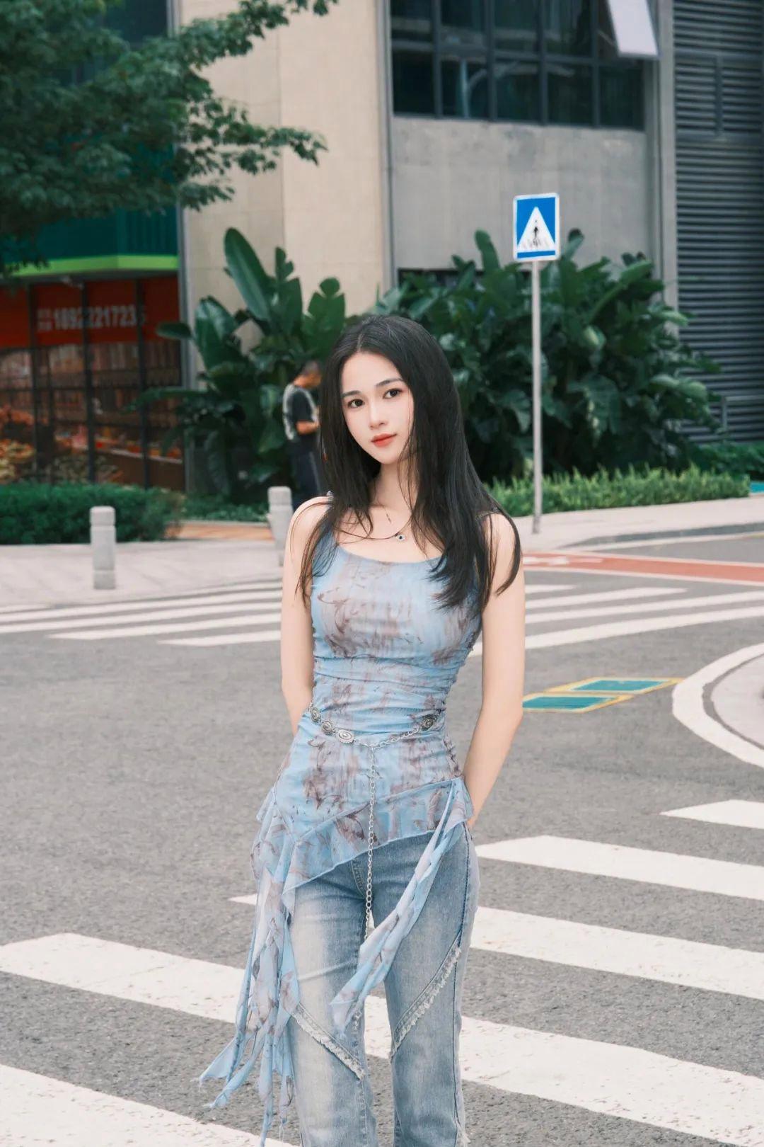 街边拍照,侧身站立能更好地展现身形线条。微微回头看别处,表情保持轻松,不用过度摆拍,就能传递出一种不经意的松弛感。整个人显得自然、漂亮、上镜又不做作。