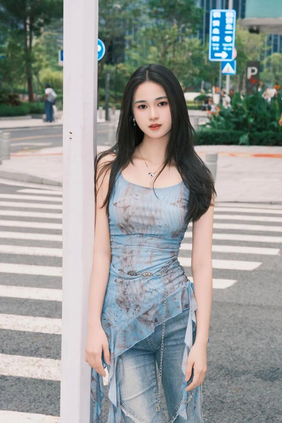 街边拍照,身体靠着路杆站立,整个人会更放松自然。眼神看向镜头,微微一笑,整张照片立刻有了氛围。尤其是晴天时分,光线明亮柔和,搭配这个姿势特别容易出片。