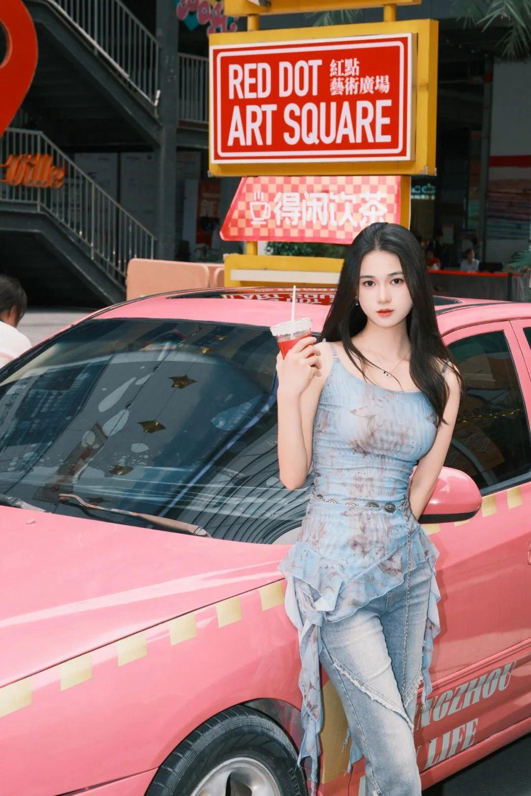 街边拍照时,如果遇到停靠的装饰车辆,不妨利用起来。靠坐在车边,一只腿自然放松,眼神不看镜头而是望向远方,就能营造一种随性的旅人感。画面松弛、氛围感满分。