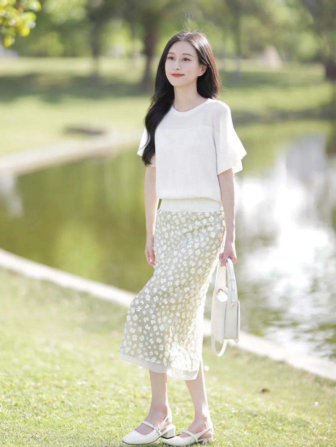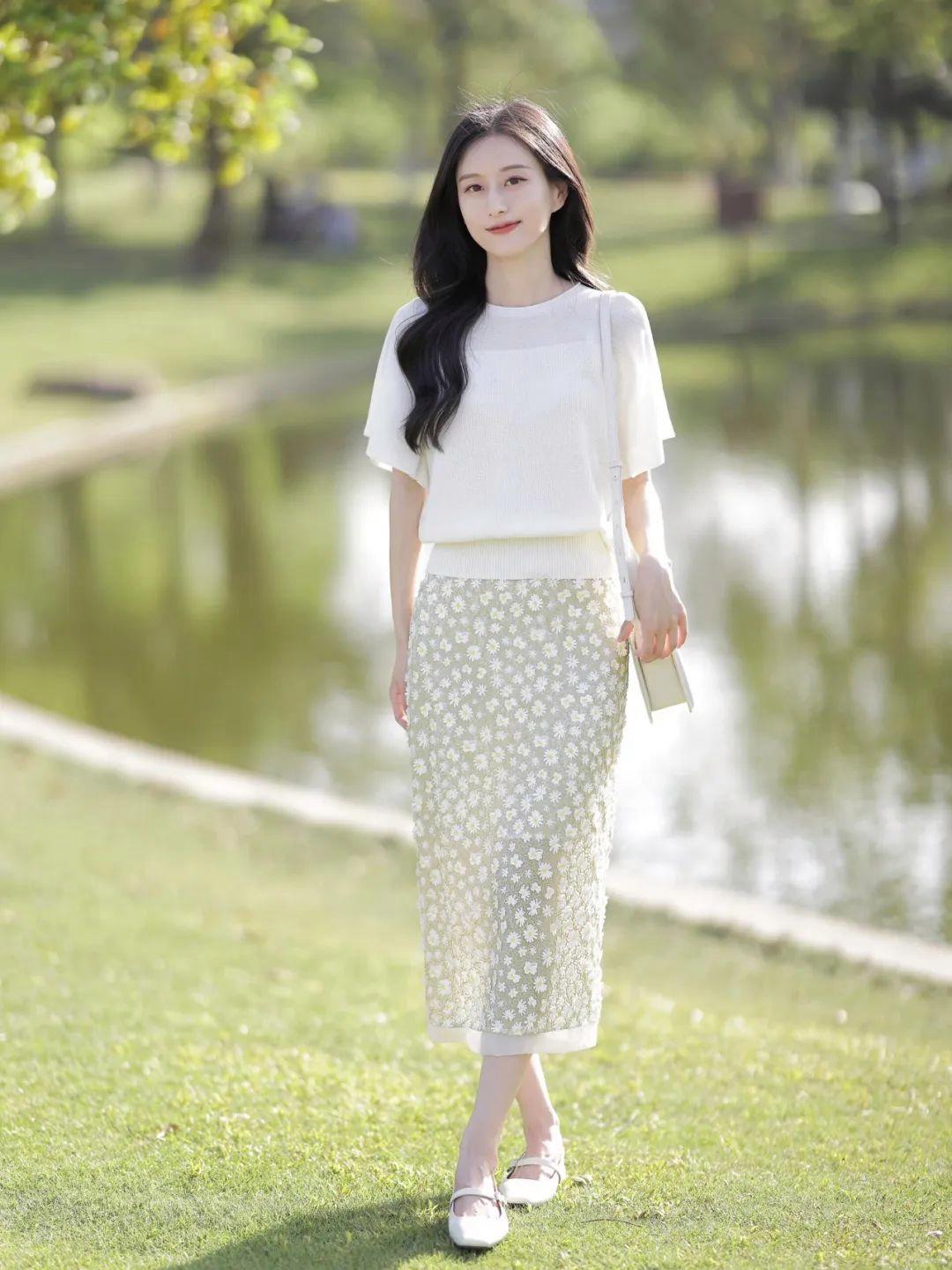 穿裙子拍照时,站姿同样能展现好气质。试着将双腿交叉站立,歪着头笑着看镜头,不仅能优化腿部线条,还能突出面部的温柔神情。适合拍街头、草地、庭院等背景,知性大方优雅很漂亮。