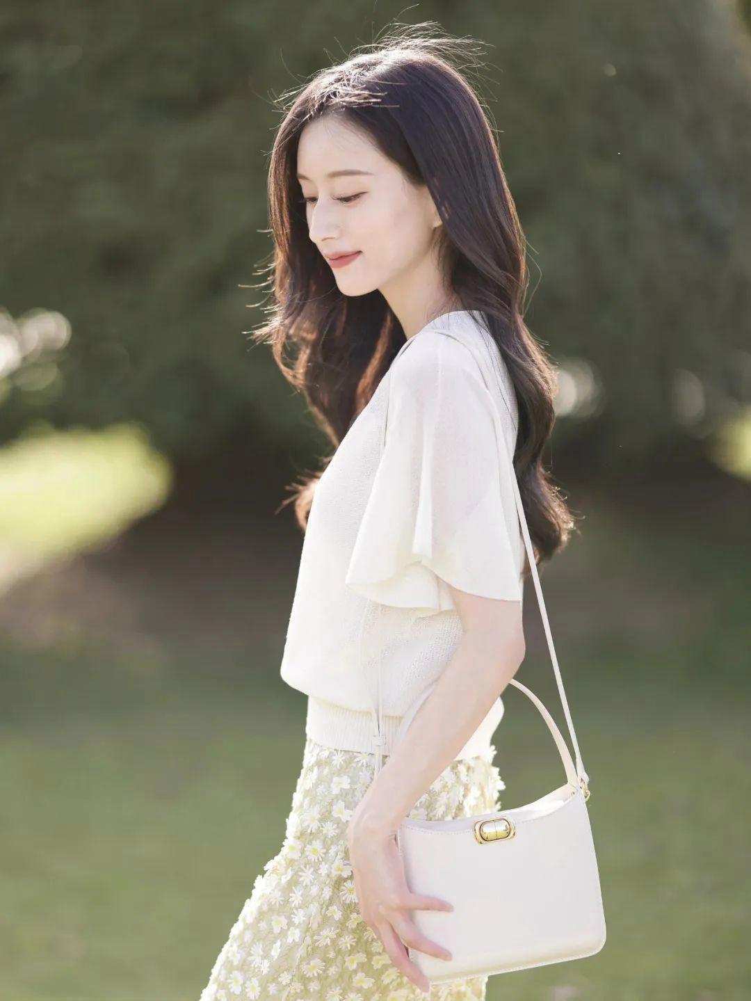 穿裙子外出拍照时,可以将双手轻轻环抱在胸前,自然看向远方,整个人会显得特别知性。这个动作看似简单,却能瞬间提高照片的层次感,拍出沉静、有内容、有气质的感觉,很适合中年或成熟女性。