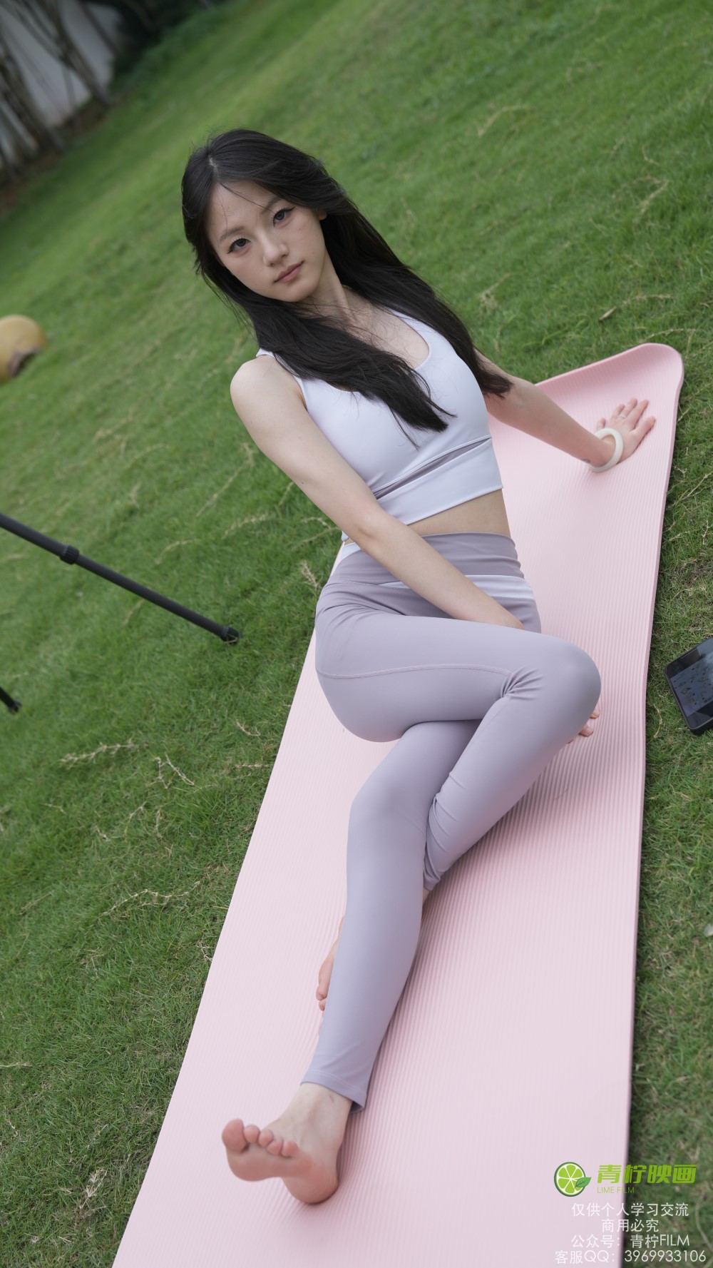 衣服:浅灰色紧身背心+中灰色紧身瑜伽裤