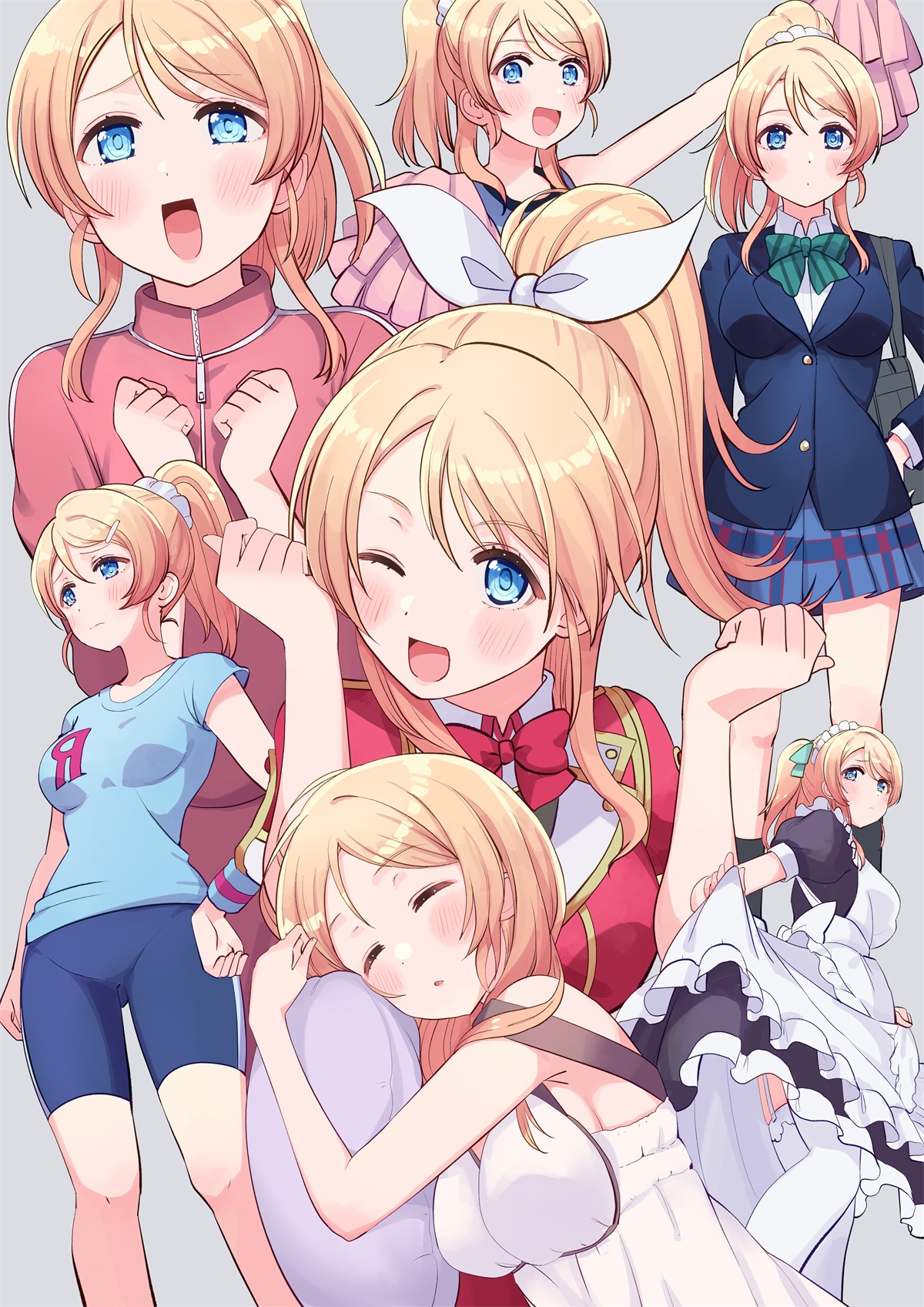 当你为了找一张能当4K壁纸的南小鸟翻遍全网,收获的却总是带水印的扫描件或压缩到失色的旧图,那种”角色就在眼前却看不清发丝”的焦躁是否很熟悉?二次传播让大多数同人图丢失了原画的光影层次,温柔神态变成了模糊色块。这组36张、221MB的合集之所以珍贵,在于它完整保留了从运动服欢呼到女仆装闭眼的每一个微表情,甚至包含宫下爱的系列姿态。但真正值回下载时间的,是其中那张红色制服眨眼瞬间的构图——它采用了一个完全违背常规肖像比例的透视角度。